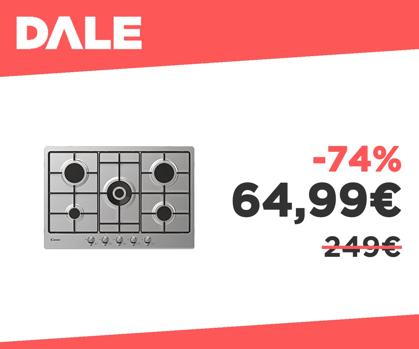 ๐ฃ Candy CHW74WTX Piano Cottura 5 Fuochi, a Gas, Acciaio Inossidabile, Larghezza 74,5 cm, Doppia Corona, a Incasso, Griglie Smaltate, GPL e Metano, 74,5x51x3,5cm, Inox