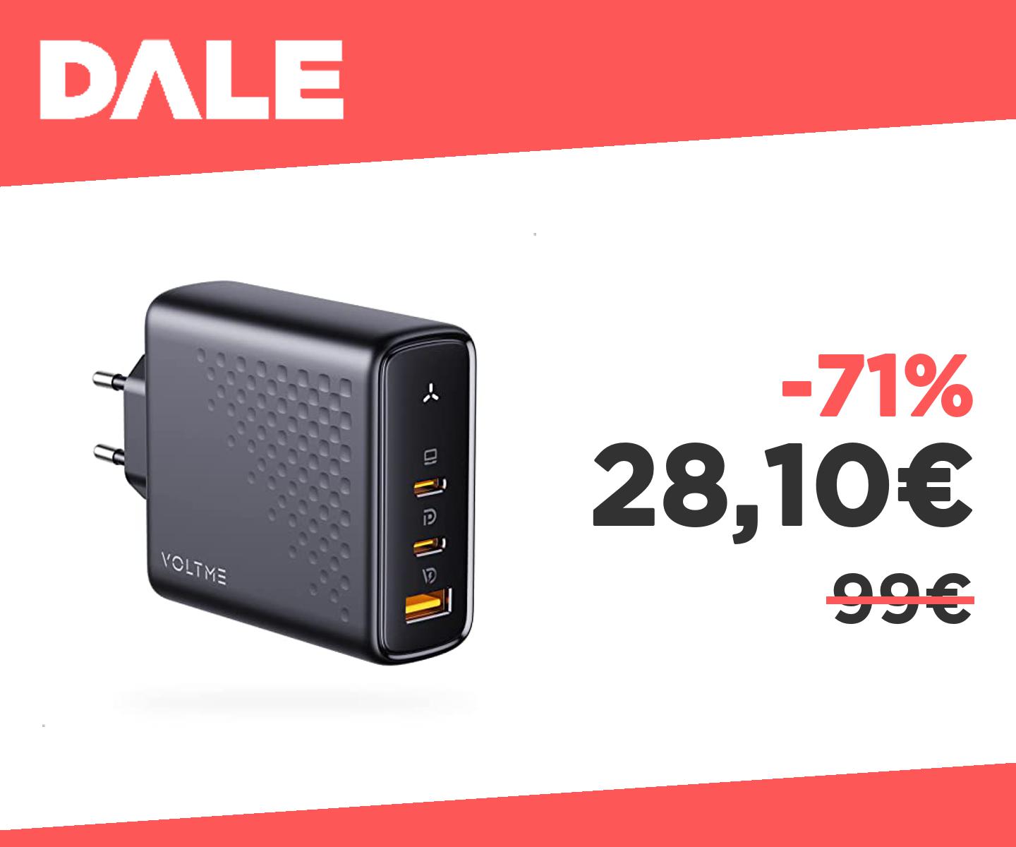 ๐ฃ VOLTME Caricatore USB C 140W PD3.1 & PPS Alimentatore Tipo C, Caricabatterie 3-Porte GaN III Presa USB-C Rapido per Chromebook, MacBook Pro, iPad Pro, Dell XPS 13, iPhone 14/13, Galaxy, Pixel - Nero
