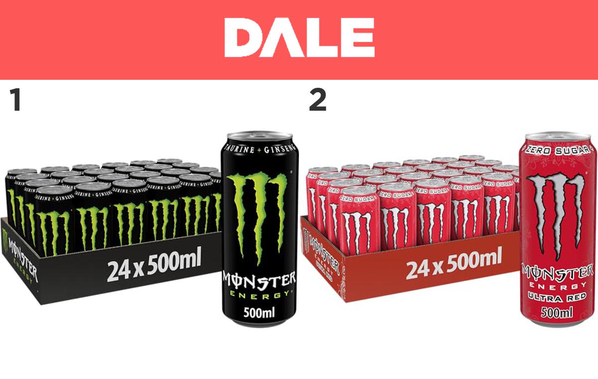 1) ๐๐ป Monster Energy โ 24 Lattine da 500 ml, Energy Drink con Ginseng, Taurina, Caffeina e Vitamine Gruppo B, Bevanda Energetica dal Gusto Originale e Fresco