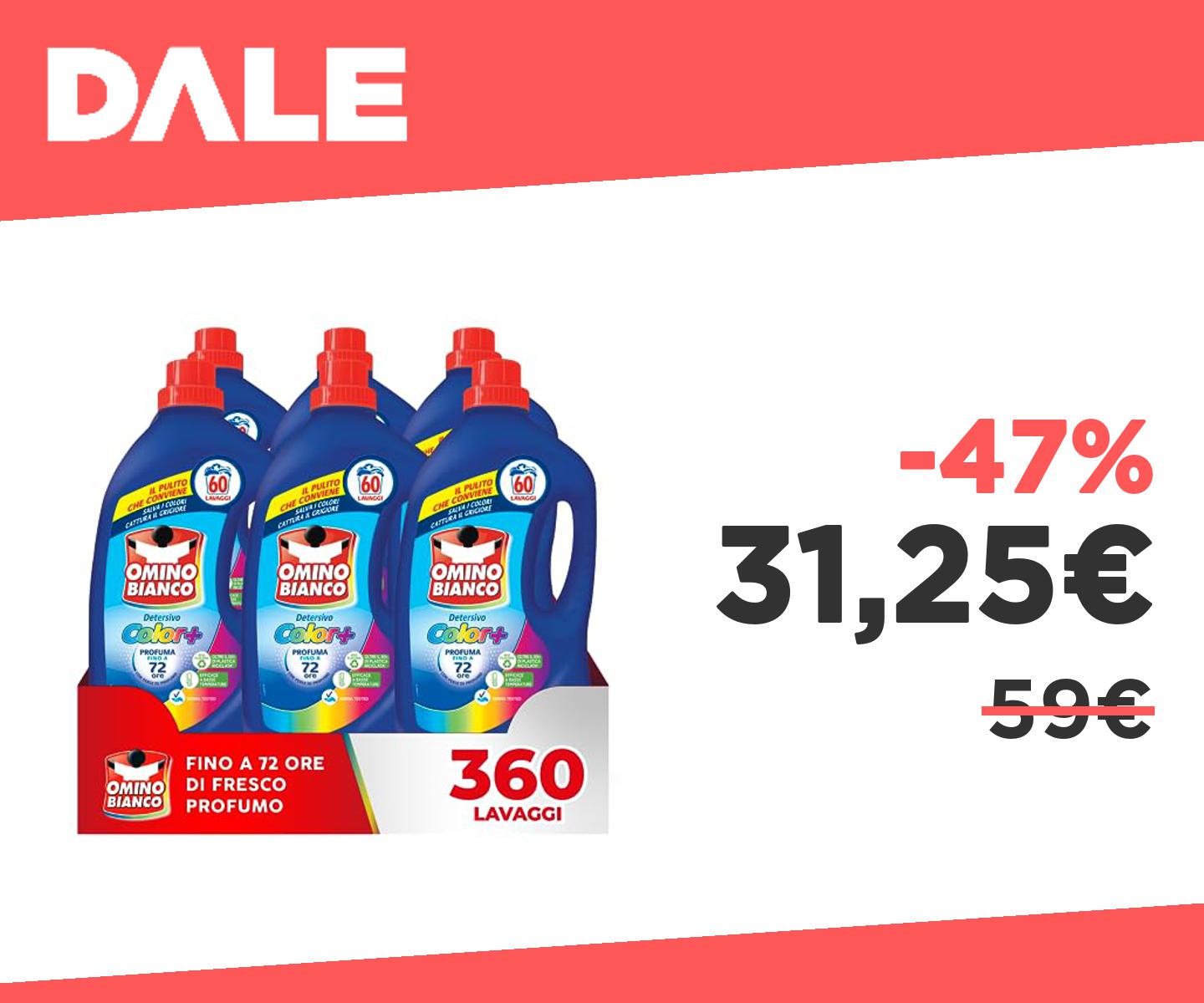๐ฃ Omino Bianco - Detersivo Lavatrice Liquido Color+, 360 Lavaggi, Specifico per Capi Colorati, Tecnologia Salva i Colori e Cattura il Grigiore, 2400 ml x 6 Confezioni