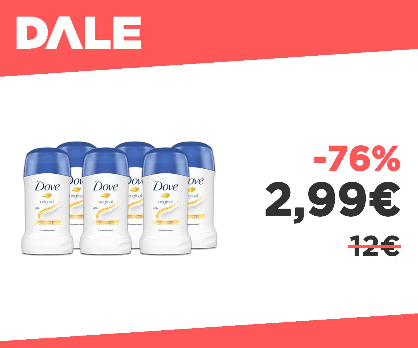 ๐ฃ Dove, Deodorante Original Stick, Deodorante Antitraspirante in Stick, con 1/4 Crema Idratante, Protezione Fino a 48 Ore, con Olio Nutriente, Deodorante Uomo e Donna, 6 Pezzi da 40 ml