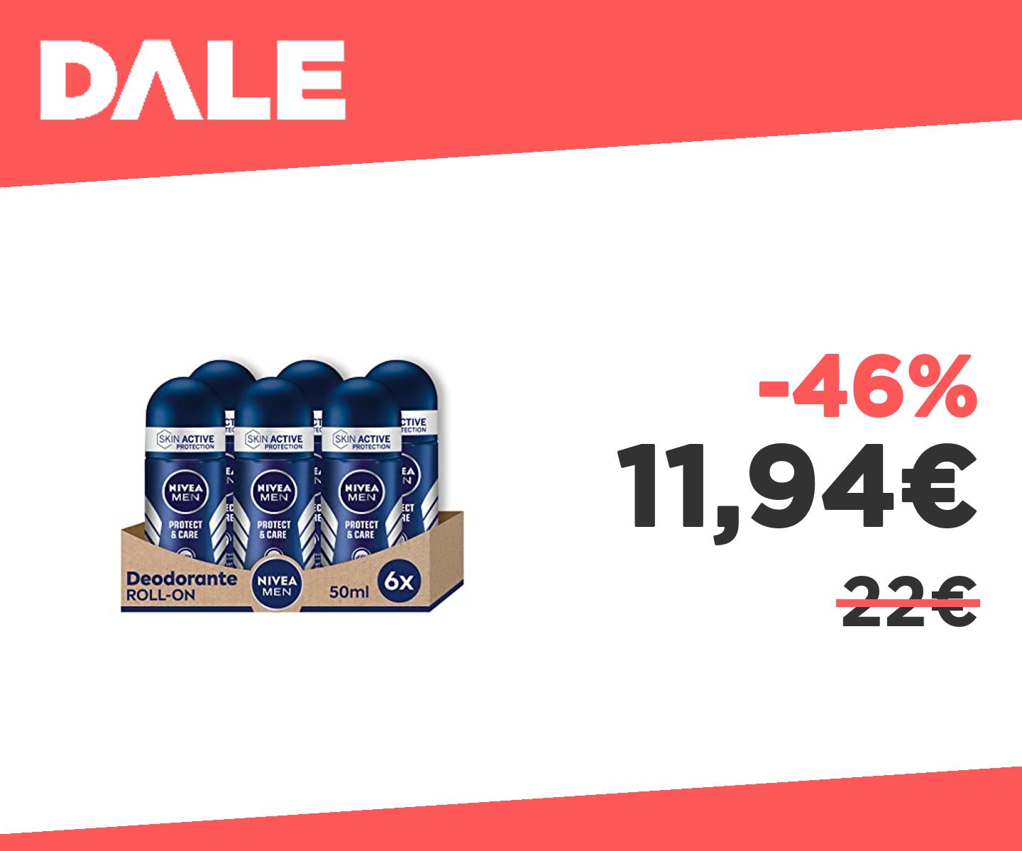 ๐ฃ NIVEA MEN Protect & Care Deodorante Roll-On 6 x 50 ml, 0% alcol, 48h di protezione
