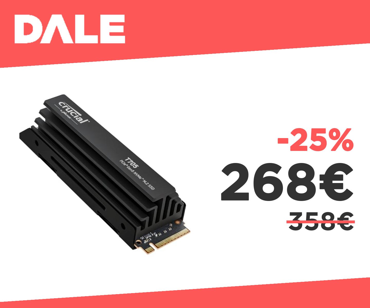๐ฃ Crucial T705 SSD 2TB PCIe Gen5 NVMe M.2 Interno Gaming, Fino a 14.500MB/s, Dissipatore Premium