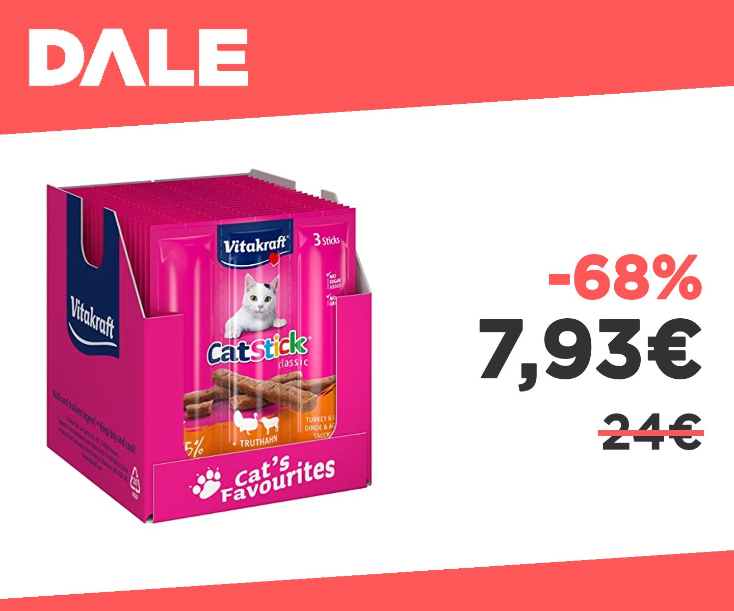 ๐ฃ Vitakraft Cat Stick Classic con tacchino e agnello, 20 confezioni da 3 pezzi