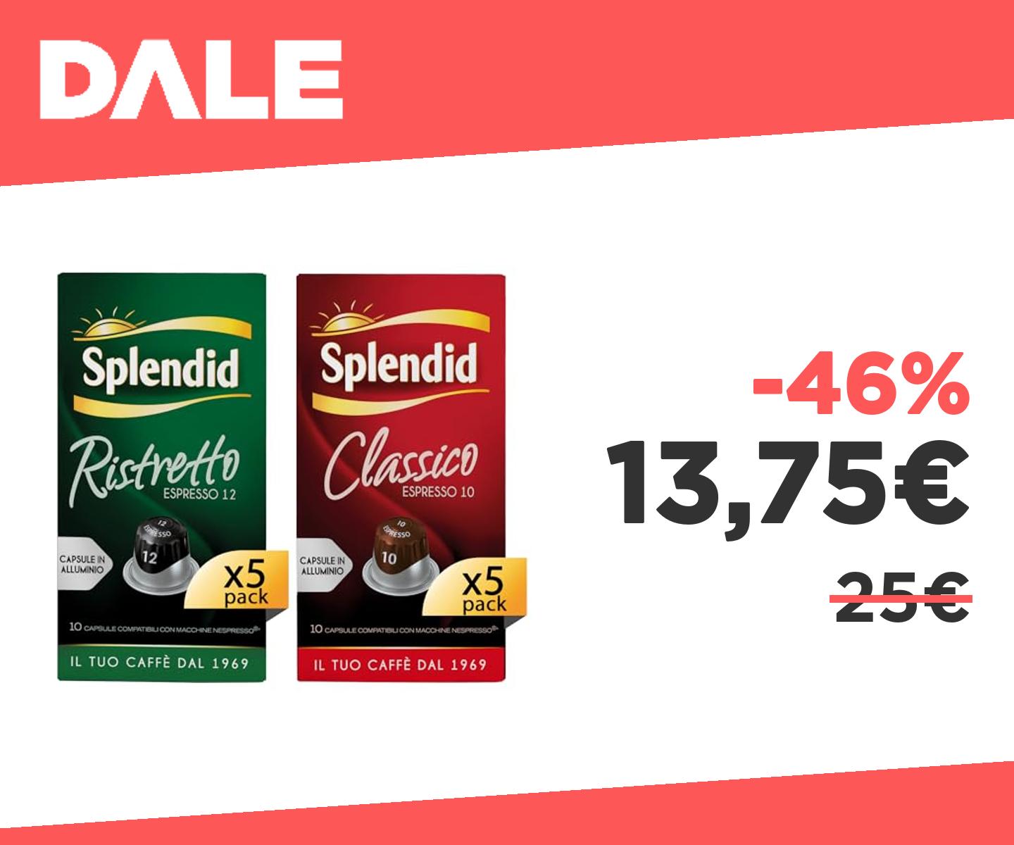 ๐ฃ Splendid Capsule Caffรจ Espresso Classico e Ristretto 100 pezzi, Alluminio, Nespresso