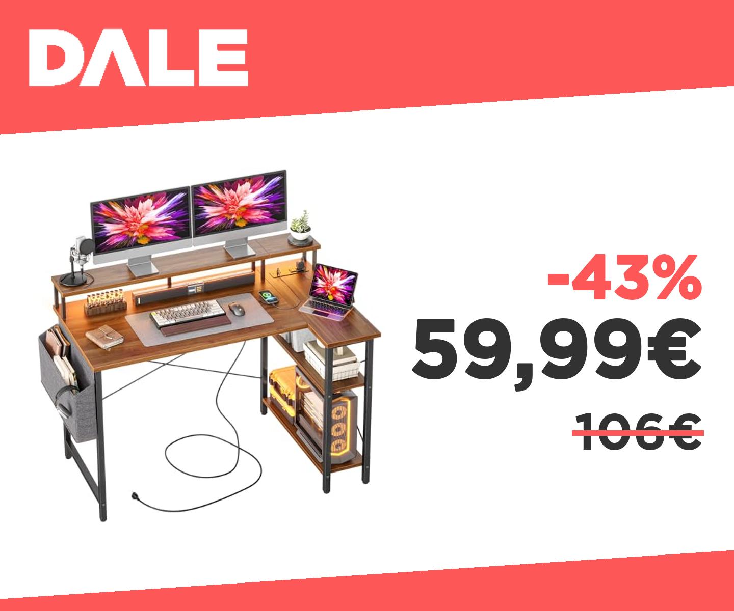 ๐ฃ BEXEVUE Scrivania angolare L 120x70 cm con LED e ciabatta
