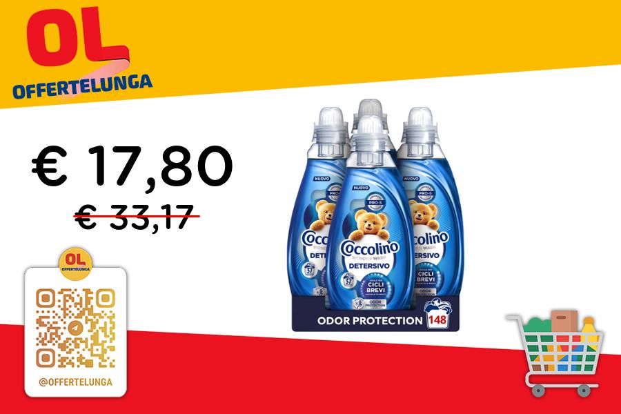 🧺 Coccolino Wonder Wash Detersivo Lavatrice Liquido | Odor Protection | 4x1480 ml, 37 lavaggi