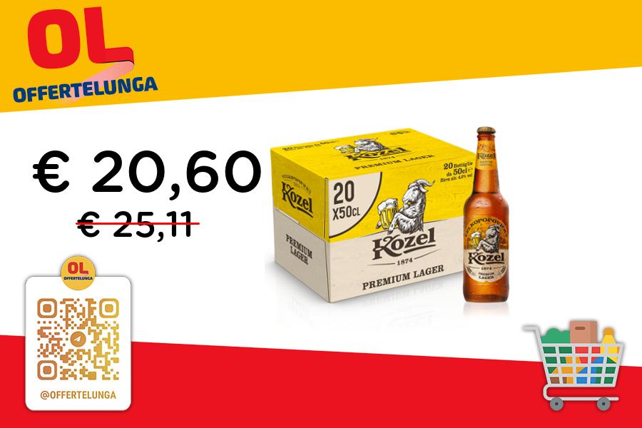 🍺 Kozel Birra Premium Lager | Cassa con 20 bottiglie da 50 cl | 10 L | Gradazione 4,6% Vol
