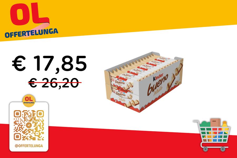 🍫 Kinder Bueno White | 60 snack | Cioccolato bianco, nocciole, crema, granella | 30 confezioni
