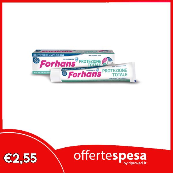 π Forhans, Dentifricio Protezione Totale, Dentifricio Multi Azione con ProprietΓ Lenitive, Rigeneranti, Antibatteriche, Previene Cattivo Alito, Placca e Carie, Non Contiene SLES - 75 ml