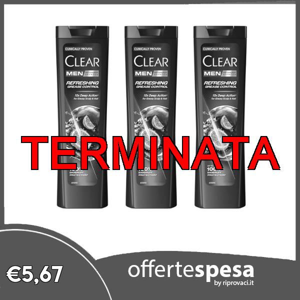 π Clear Men Shampoo Uomo Refreshing Grease Control, Per Capelli Grassi, Azione Anti-Forfora e Anti-Sebo, Fino al 100% di Protezione dalla Forfora, Con Niacinamide, 3x 225ml
