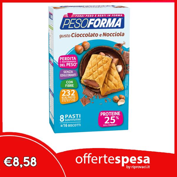 π Pesoforma Biscotti al cioccolato e nocciole, pasto proteico sostitutivo, per tornare in forma con gusto, solo 232 calorie, nuovo formato, 16 biscotti, 8 pasti sostitutivi, 528 g