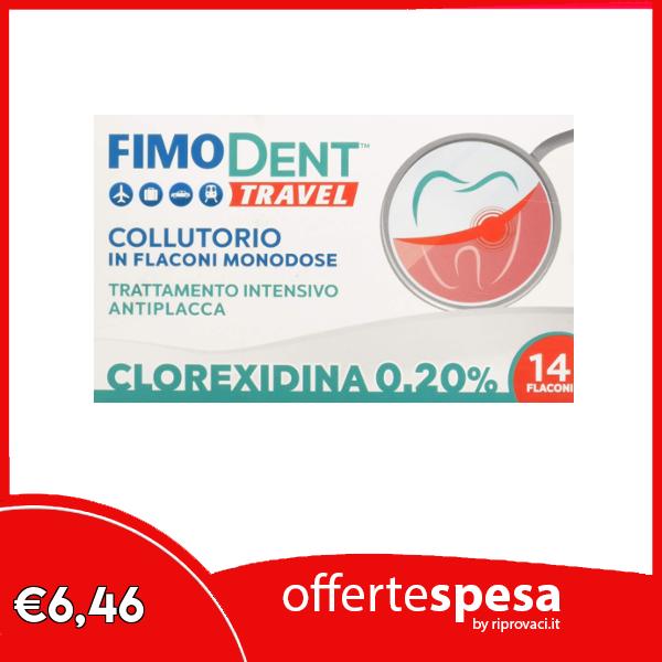 ๐ Fimodent Travel Collutorio alla Clorexidina 0.20% in 14 pratiche monodosi da 10mL. Con SPDD (Sistema Protezione Discromie Dentali) e gusto menta. Trattamento antiplacca e antibatterico intensivo