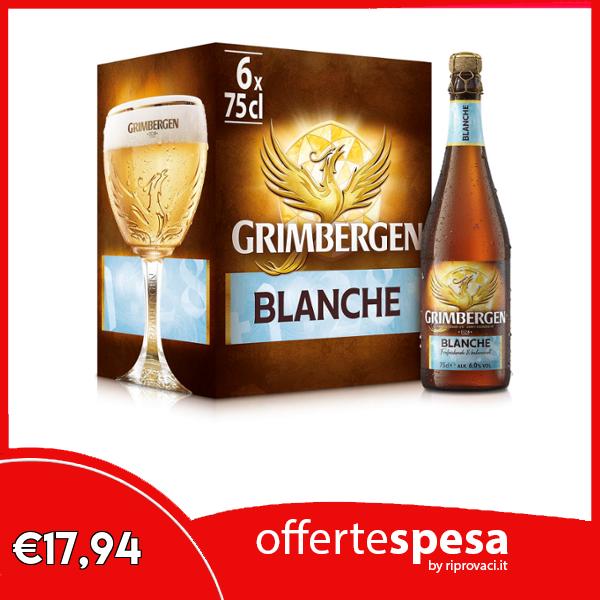 π Grimbergen Blanche, Cassa con 6 Bottiglie da 75cl, Birra d'Abbazia Blanche/Witbier, Gusto Agrumato e Speziato, Gradazione Alcolica 6.0% Vol.