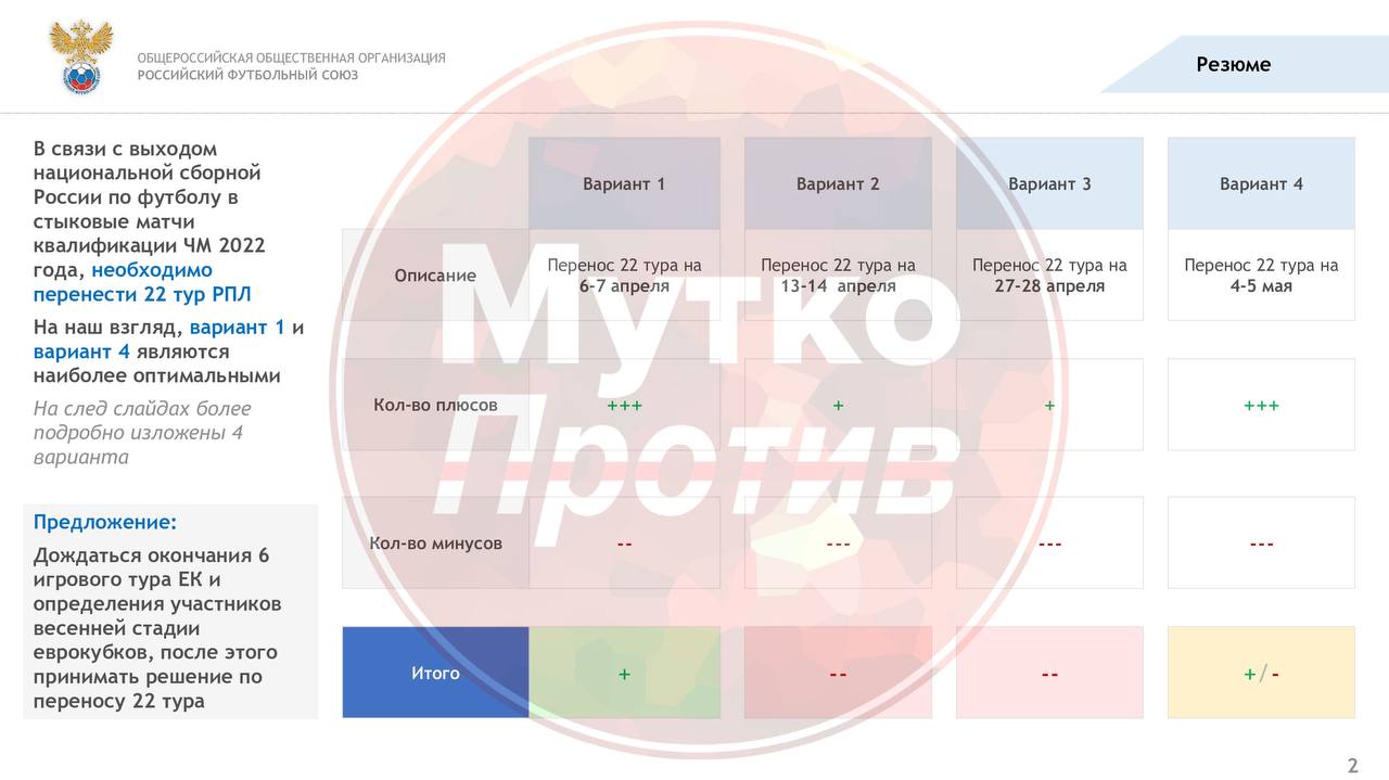 Ну а вот и все варианты переноса 22-тура чемпионата России ради матчей сборной.