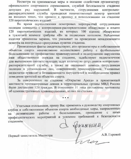 По моим данным, в том числе и это письмо (были, правда и другие) стало катализатором принятия поправок в статью 20.31 КоАП РФ. Именно по этой статье сейчас обычно и выдаются баны фанатам.