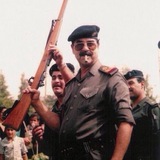 One of the many visits President Saddam Hussein made to iraqi cities and towns. Greeted with joy by the population of these places.