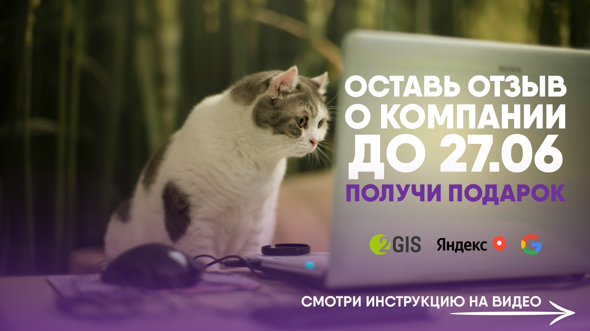 На этот раз все, что нужно — оставить отзыв о компании в Яндекс, Google или на 2gis.
