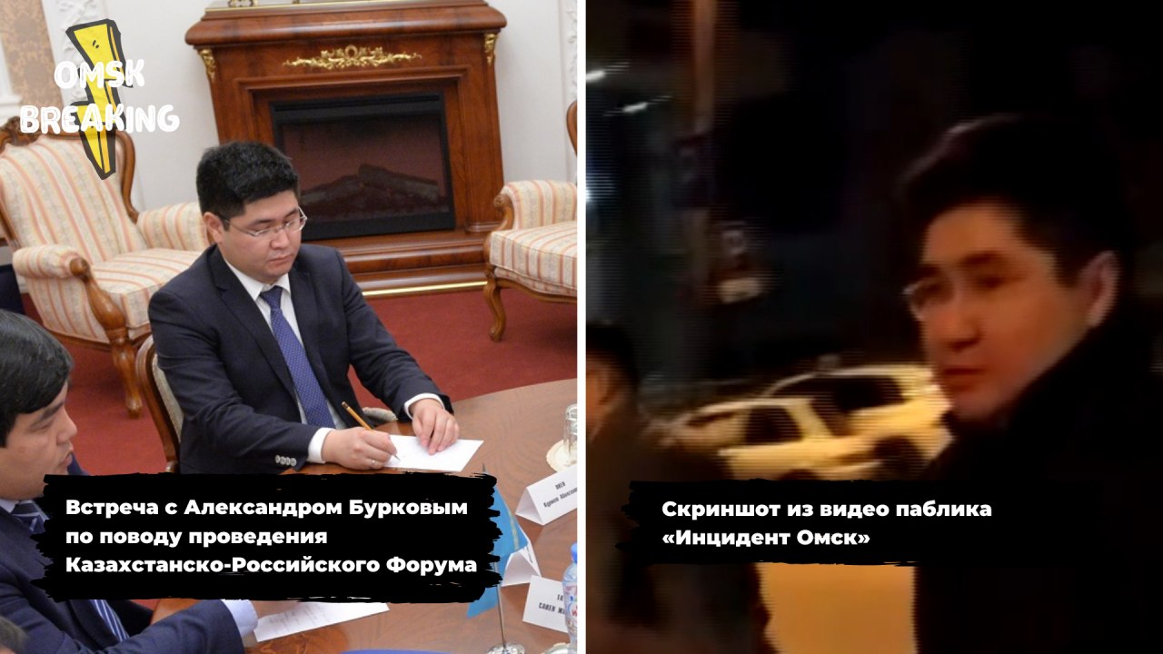 Кого мы идентифицировали: по нашей информации, на видео присутствует третий секретарь Посольства Казахстана Курмет Окен. Лучше всего его лицо можно разглядеть на 16 секунде записи. В сети всего две фотографии Окена. Одна со встречи с Торгово-промышленной палатой РФ, а другая со встречи в Омске с Александром Бурковым по поводу проведения Казахстанско-Российского Форума. Сходство между человеком на видео и человеком с двух фотографий, как нам кажется, налицо.