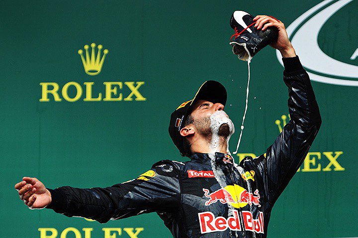 Все же знают, как Даниэль Риккардо празднует победы? Если нет, напоминаем план: