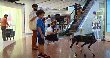 Для дезинфекции рук посетителей торгового центра Central World в Таиланде используют робота-собаку. Робот К9 бродит по магазинам с емкостью с дезинфицирующим средством. Каждый желающий может обработать свои руки.