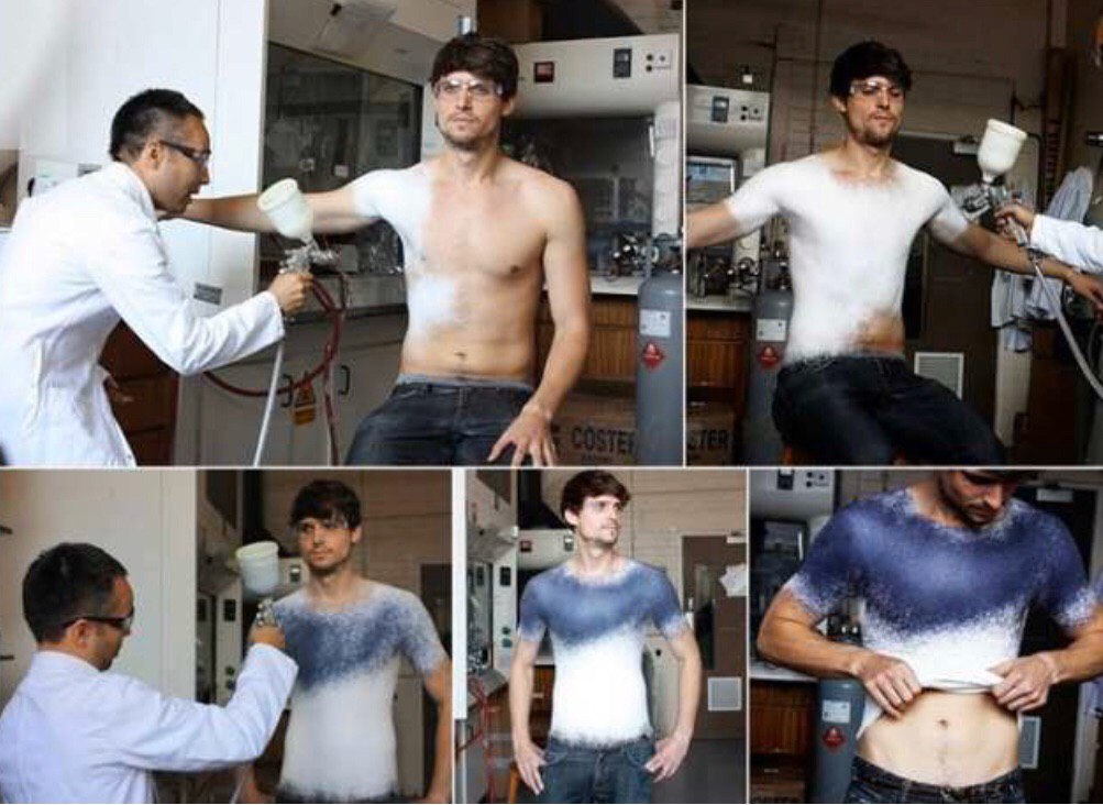 Испанский дизайнер Манел Торрес (Manel Torres) изобрел первую в мире спрей-одежду. Вы можете нанести спрей на любую часть тела, а затем снять его, смыть и снова носить.