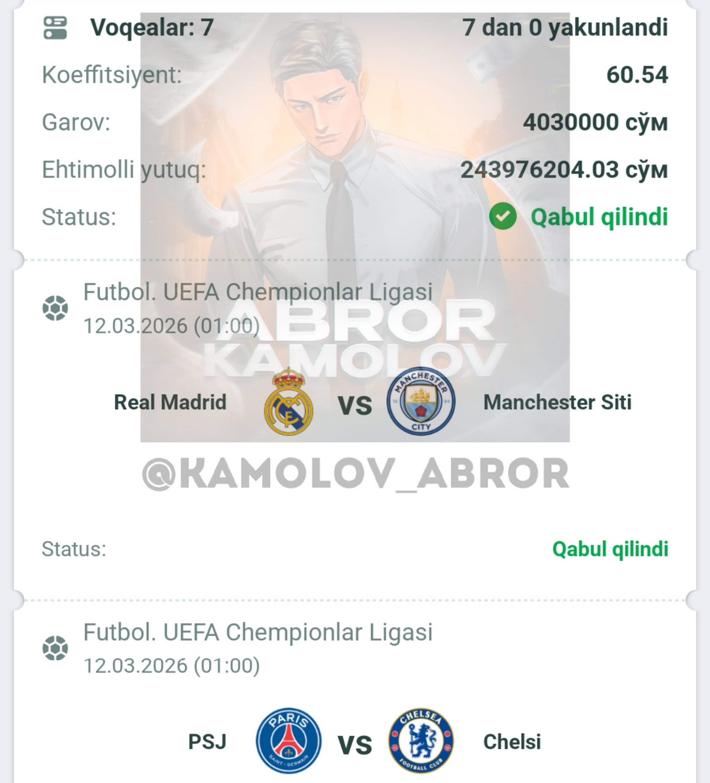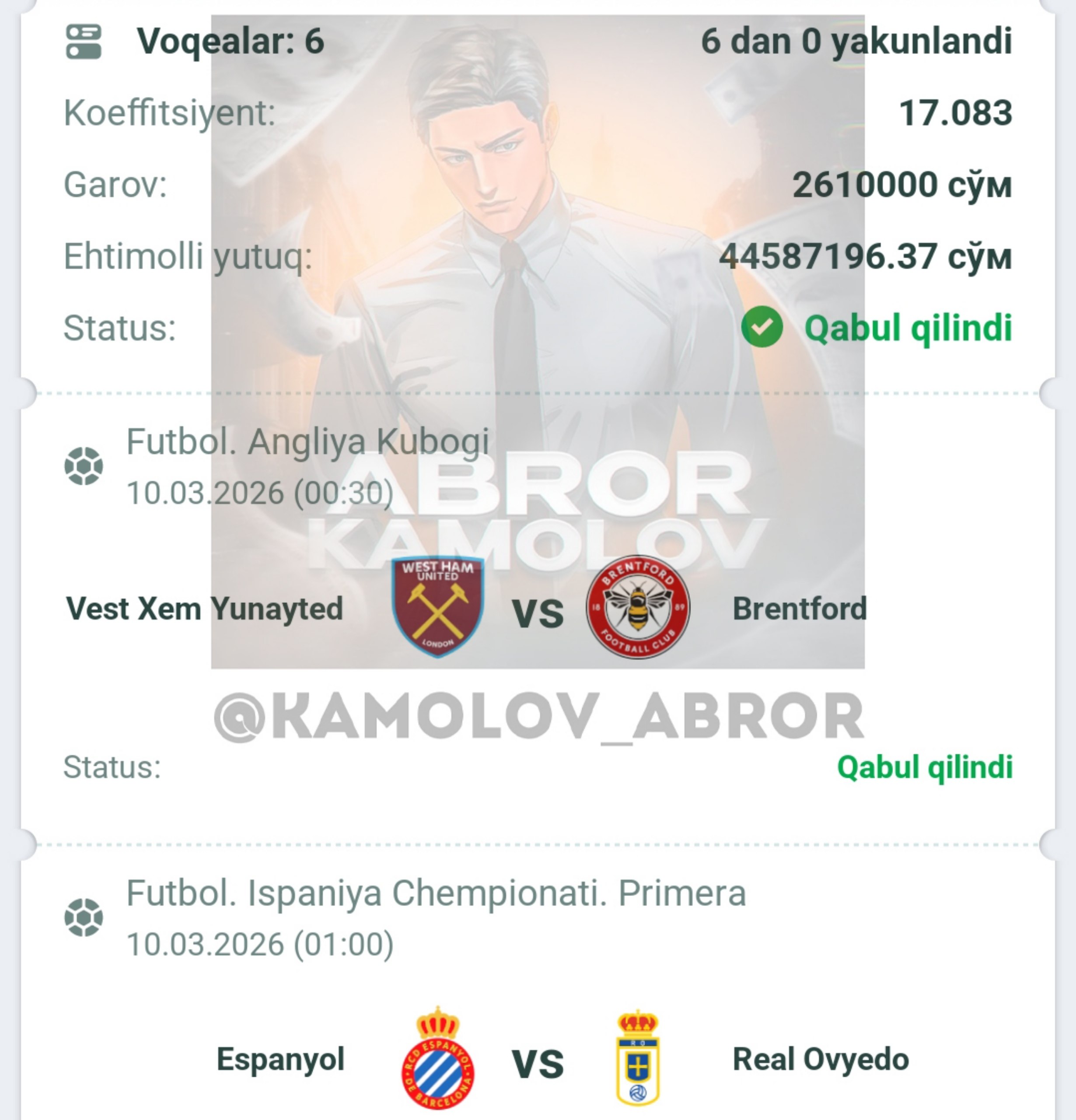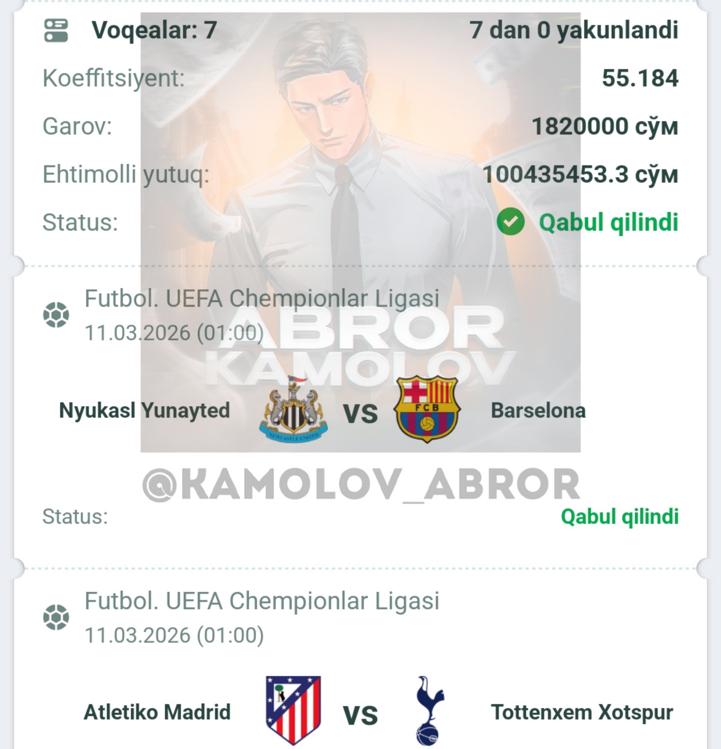 Forwarded from Abror Kamolov | Bet π°