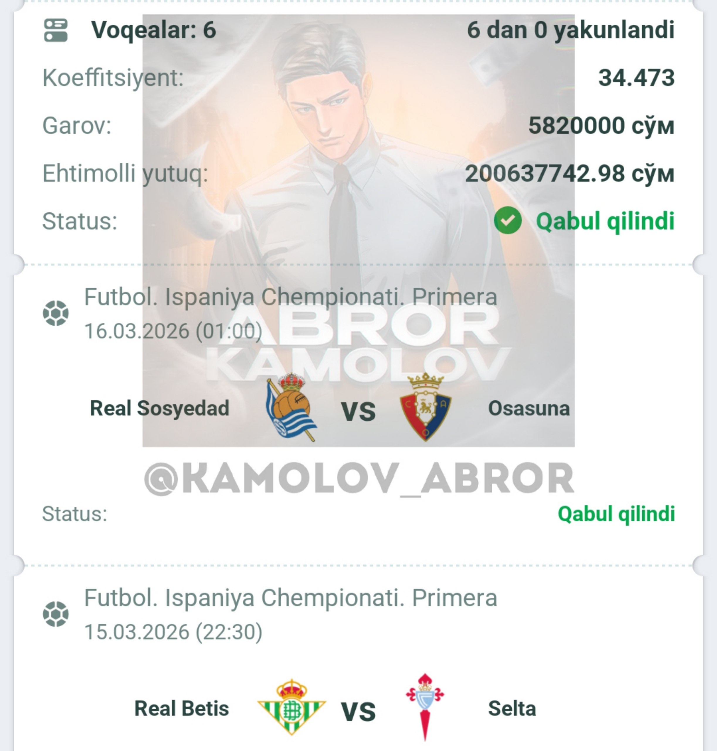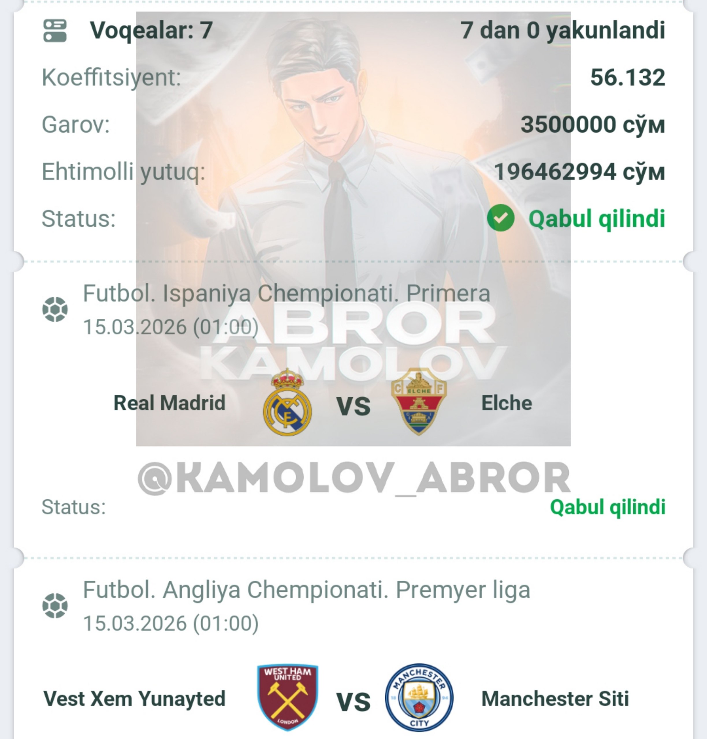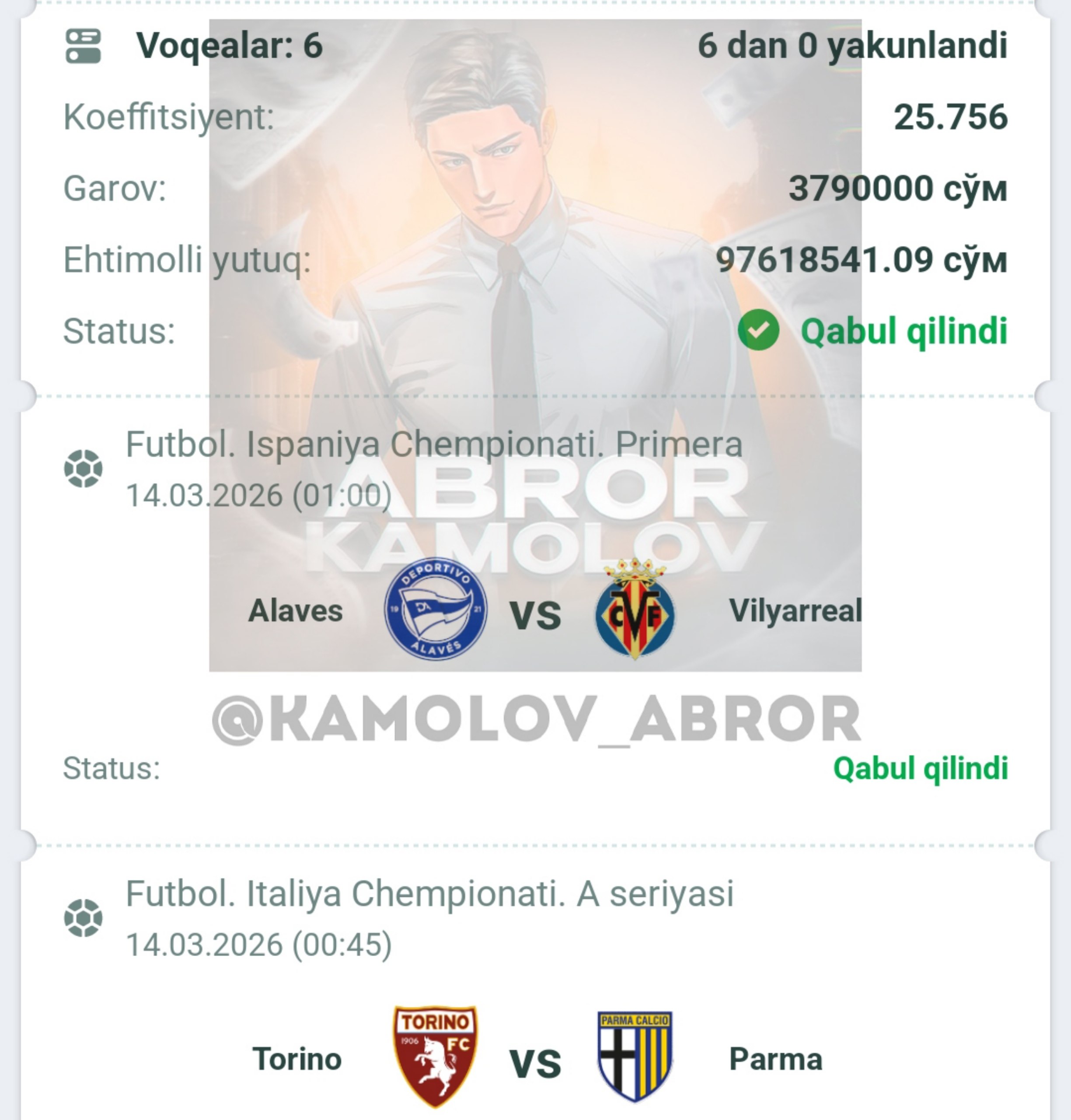 Forwarded from Abror Kamolov | Bet π°