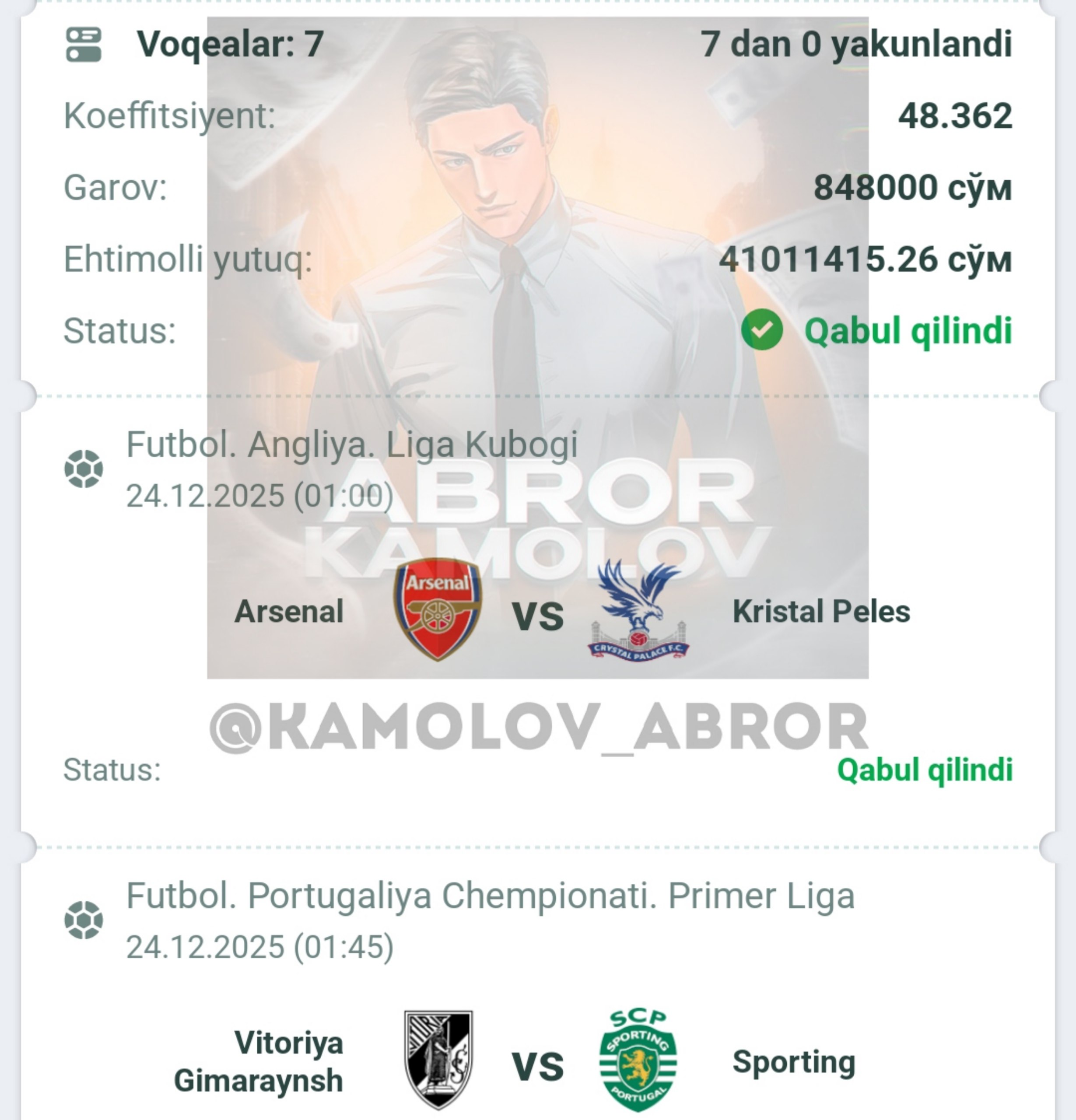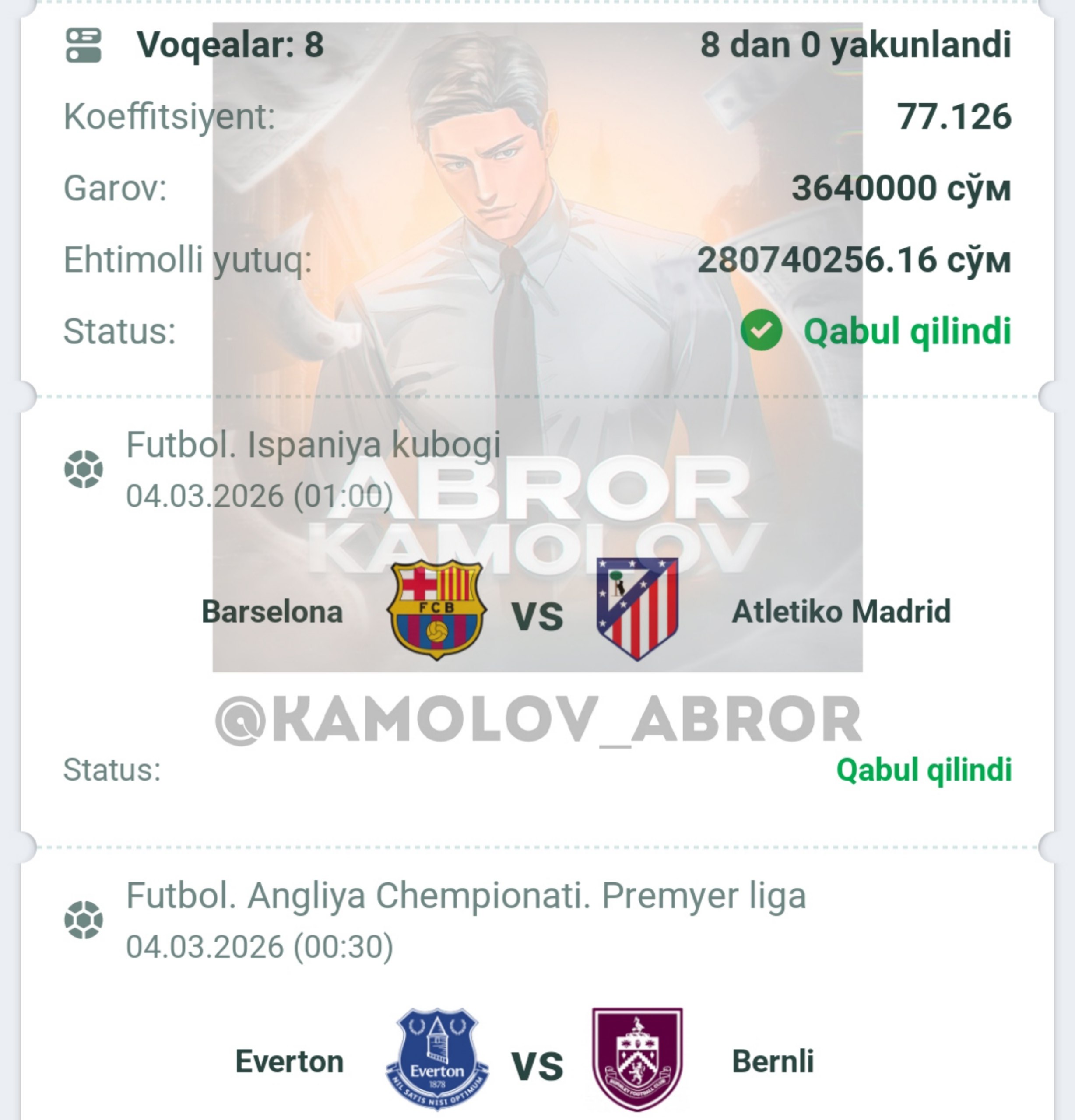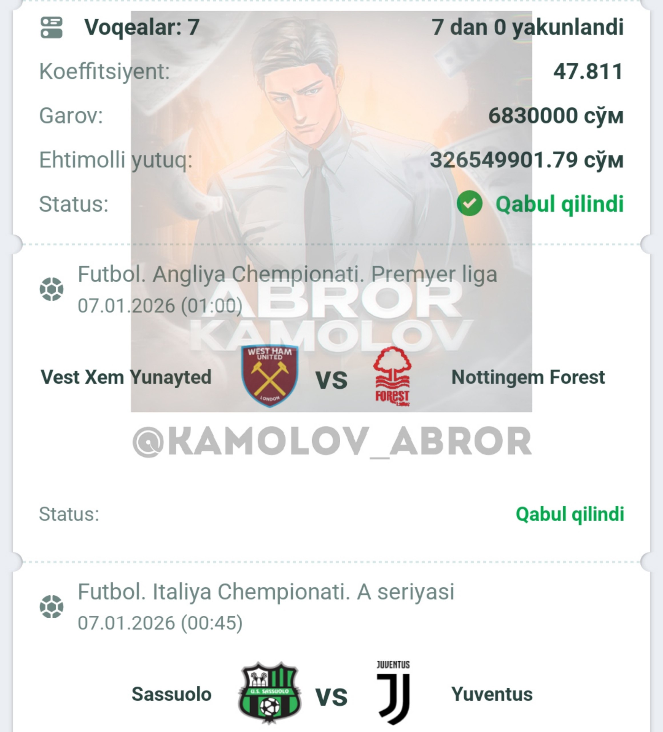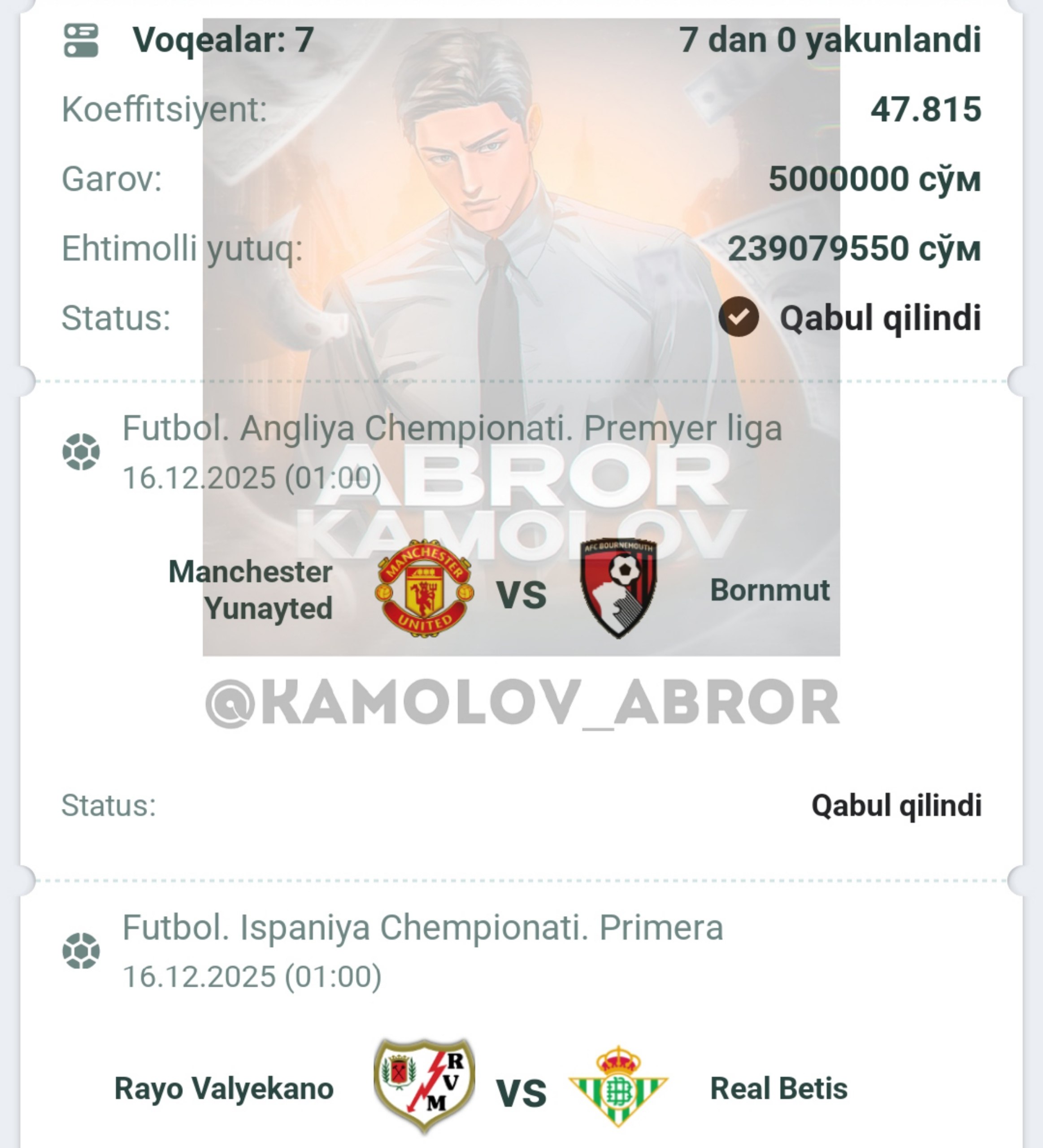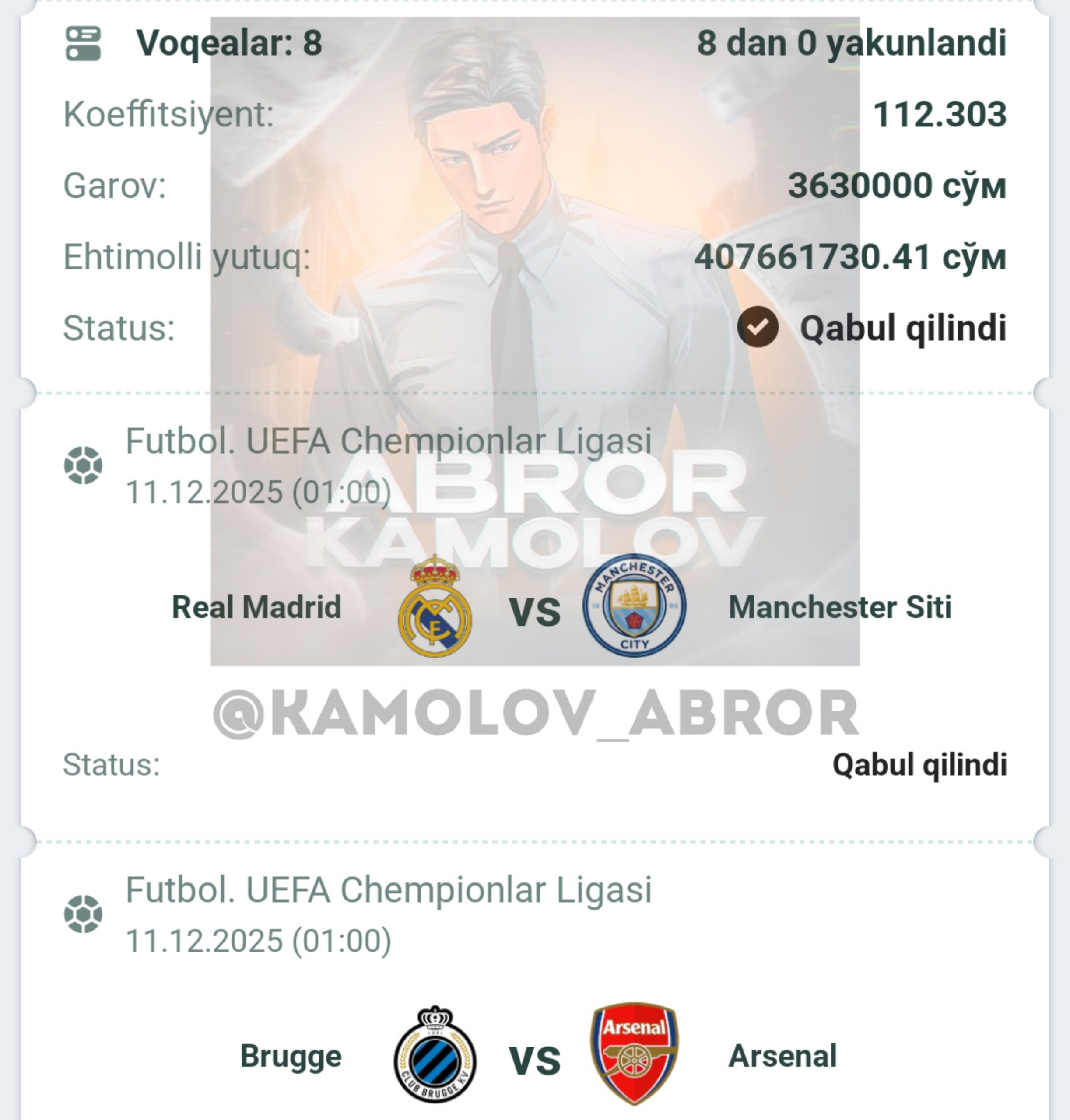 Forwarded from Abror Kamolov | Bet ๐ฐ