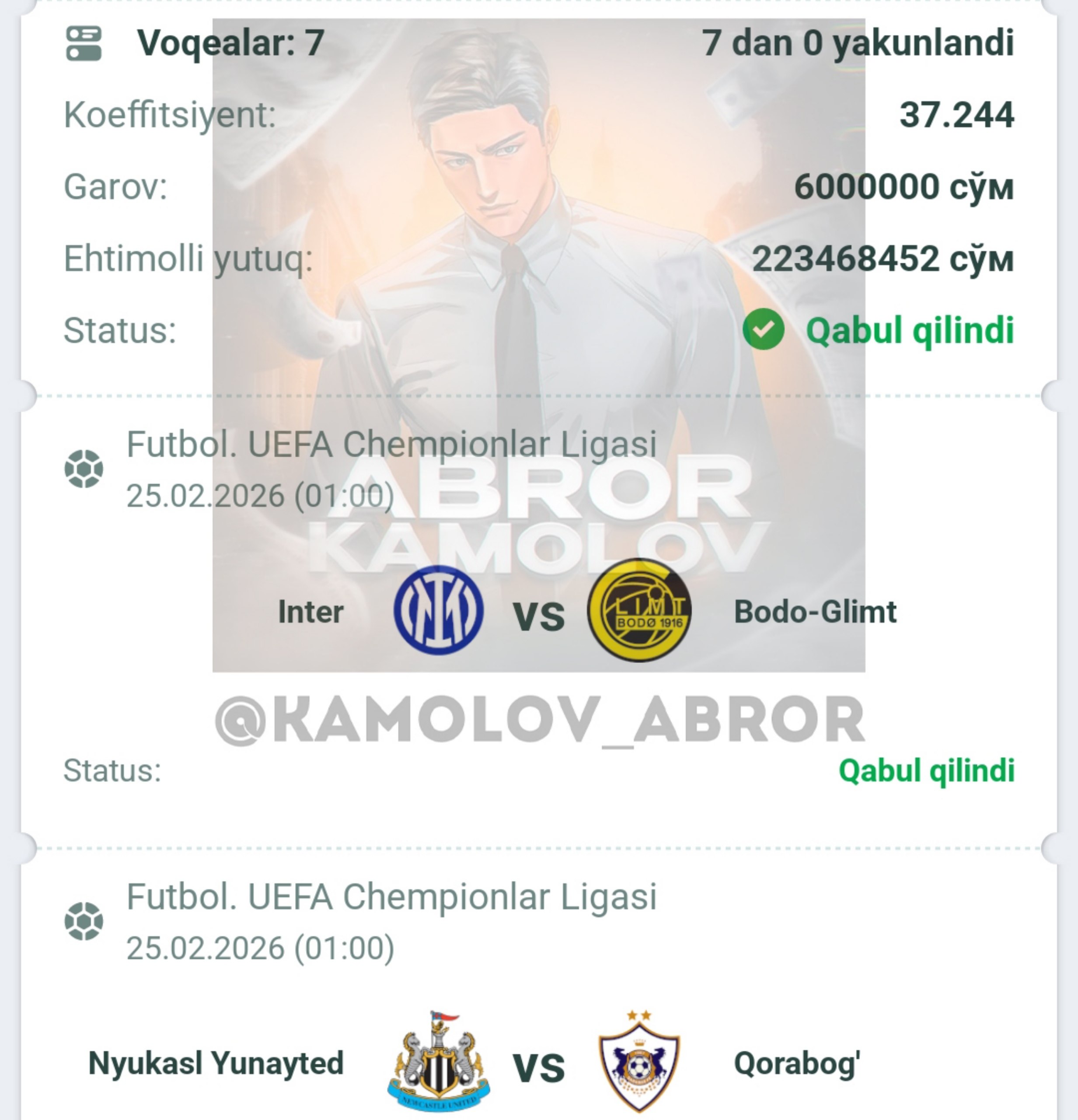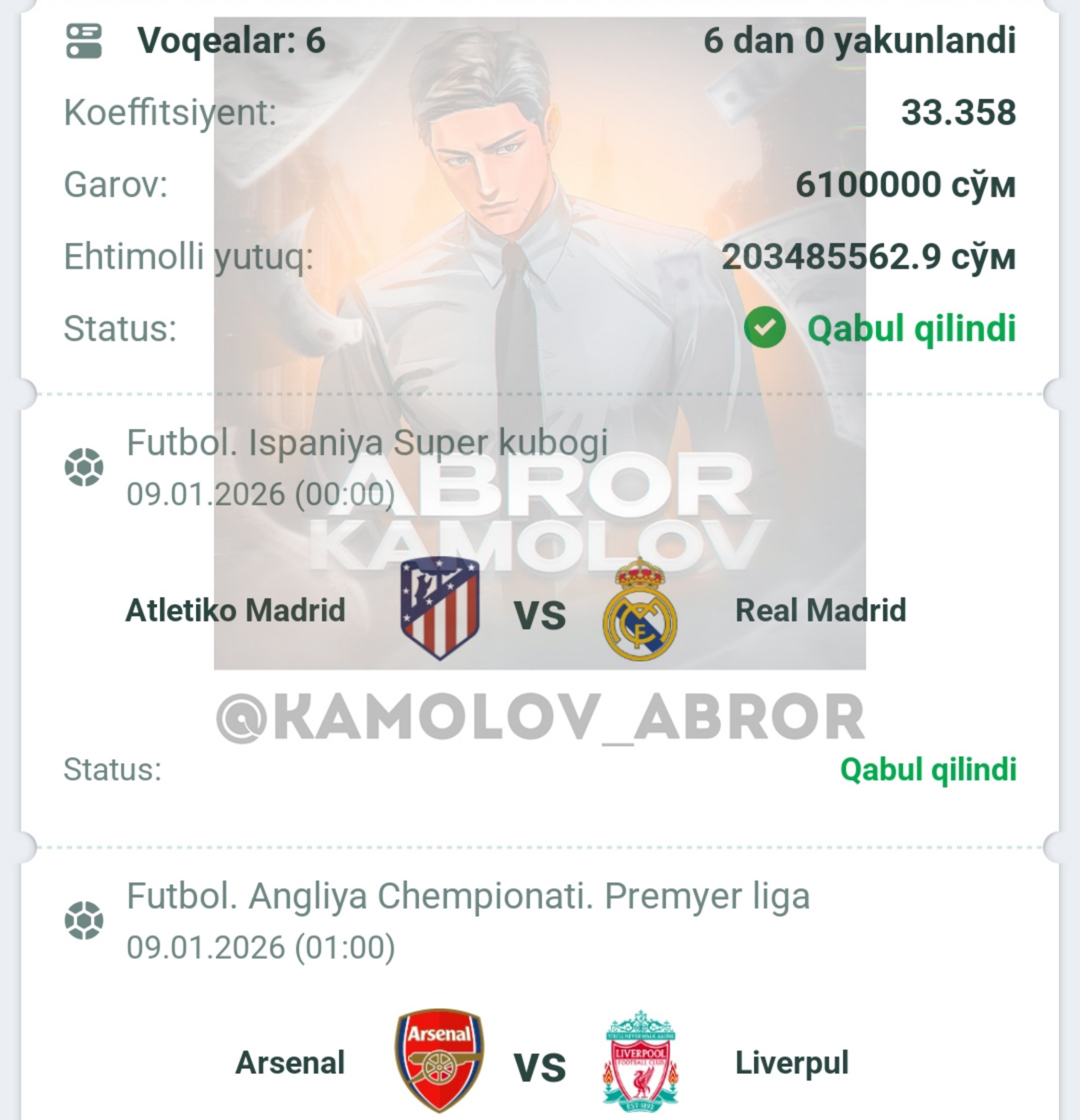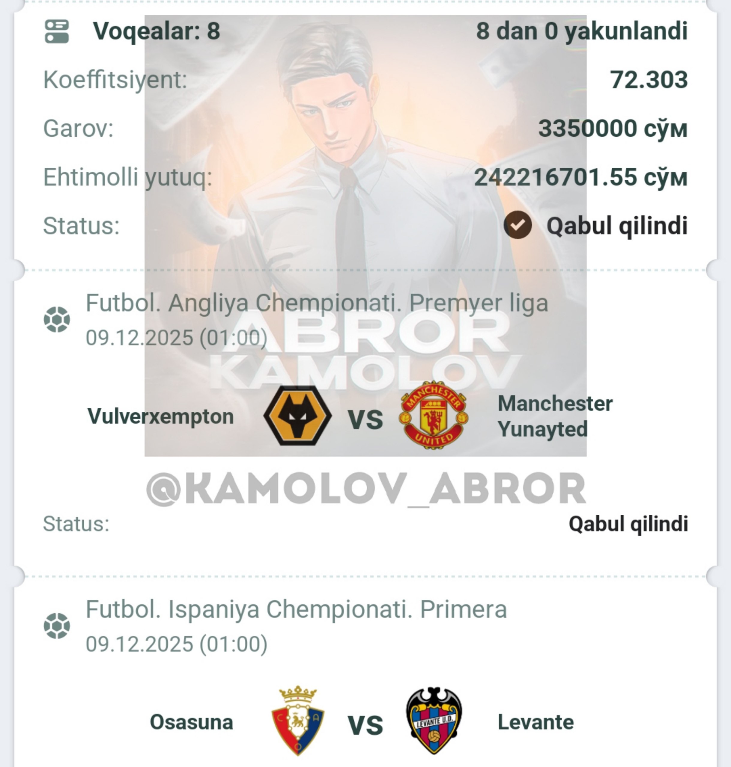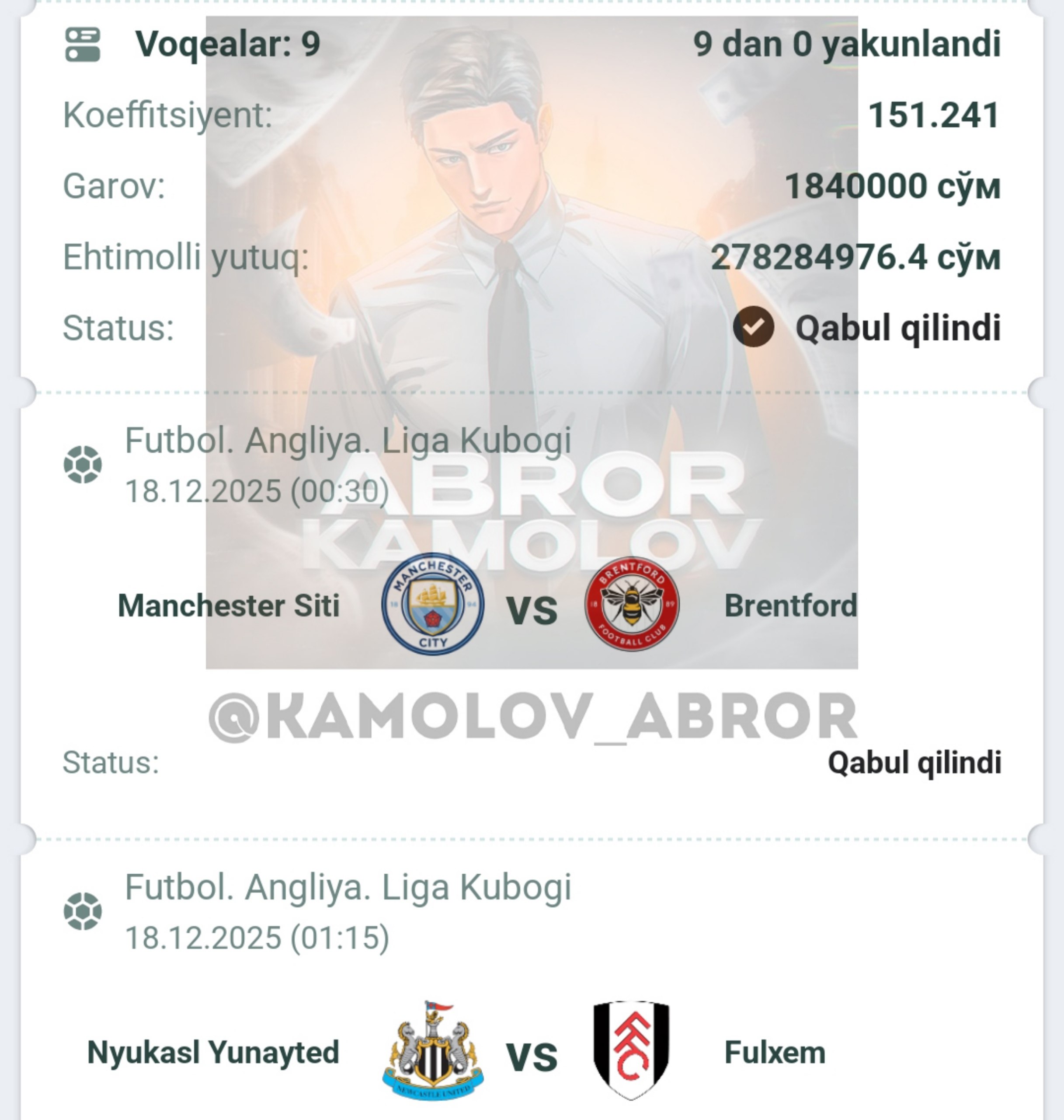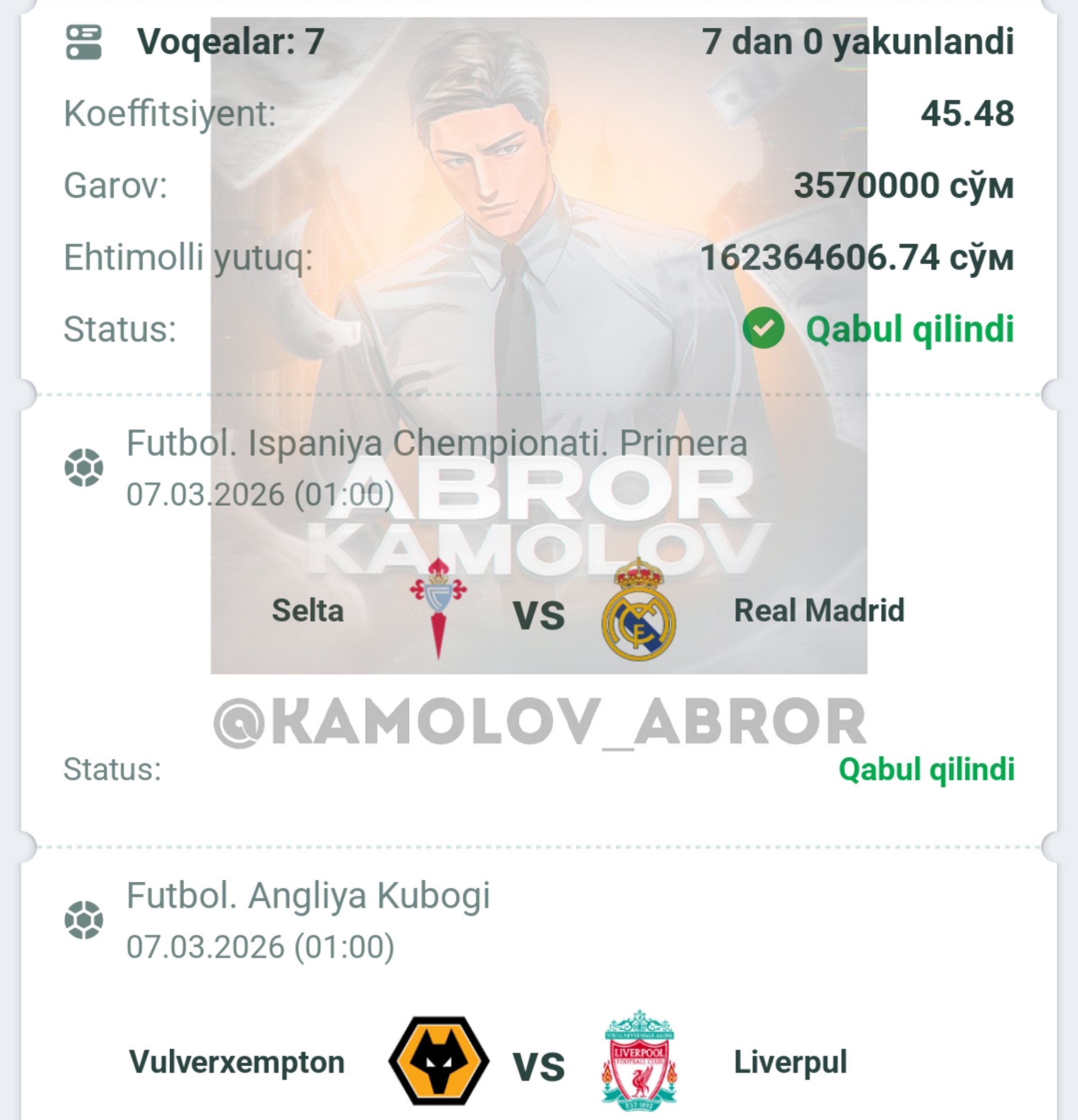 Forwarded from Abror Kamolov | Bet ๐ฐ