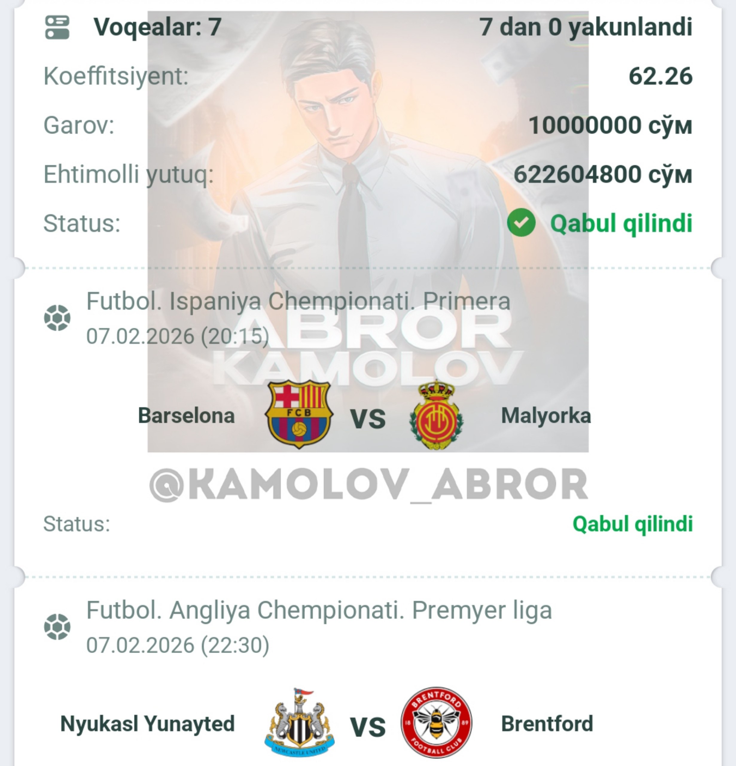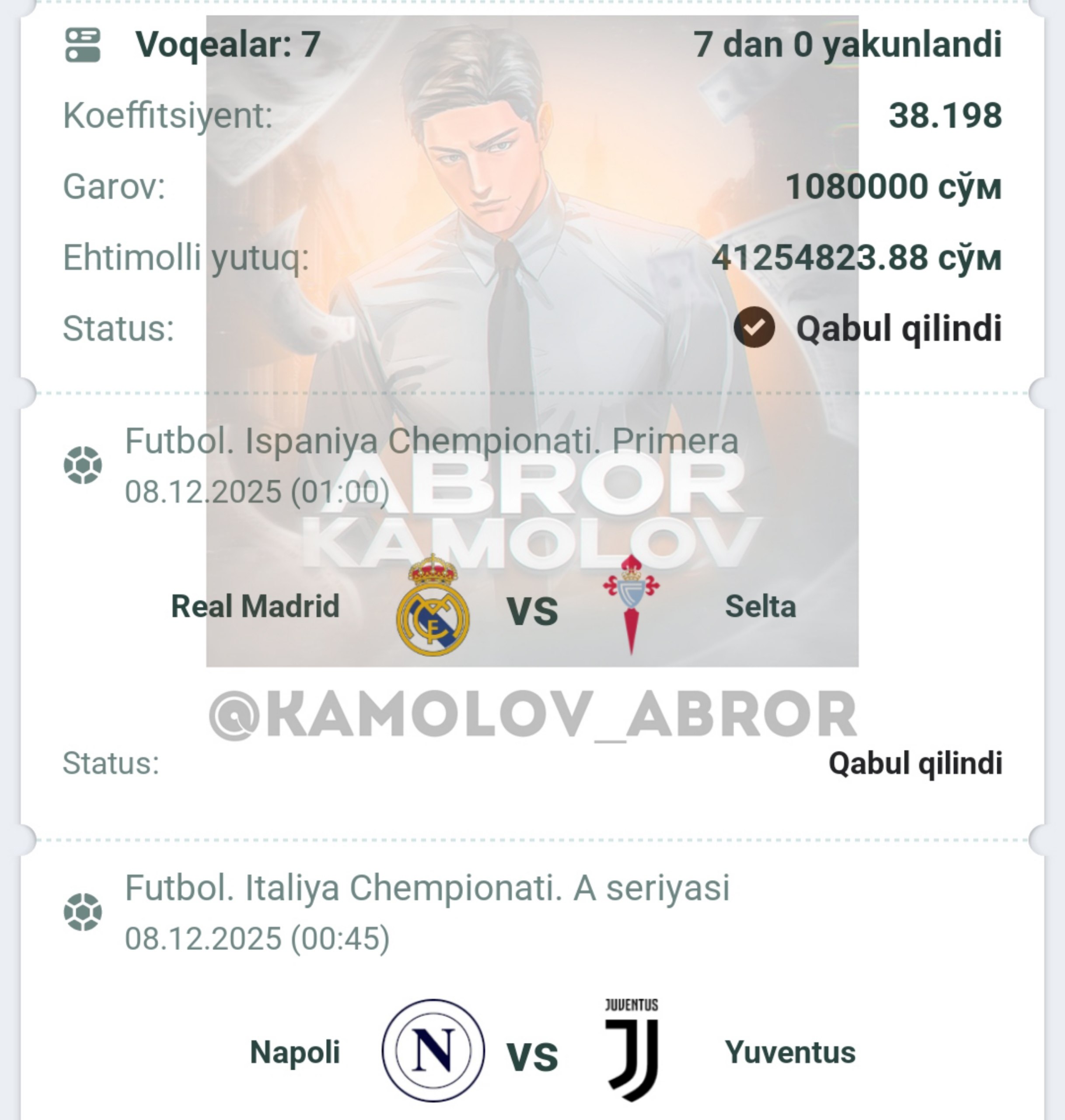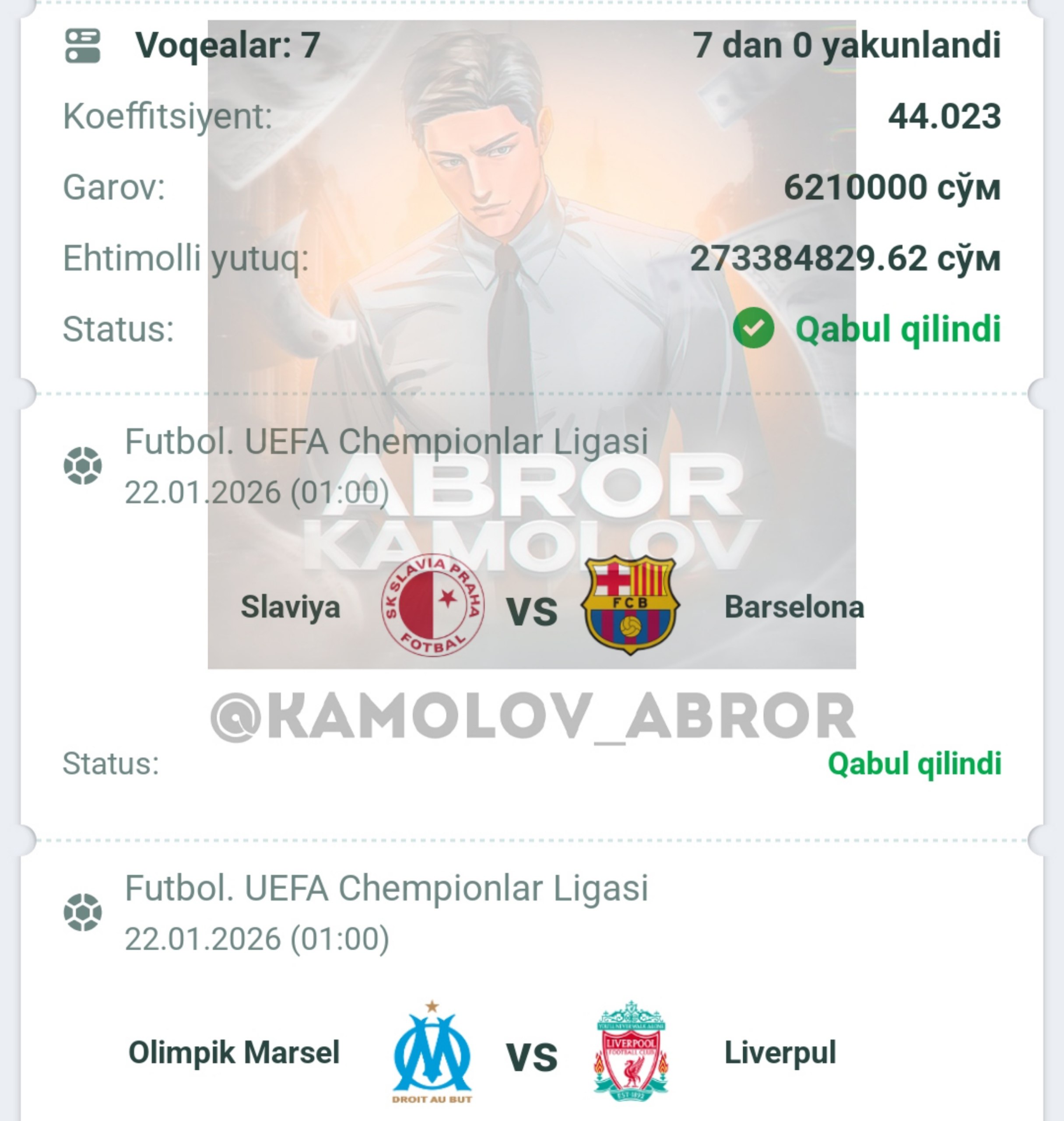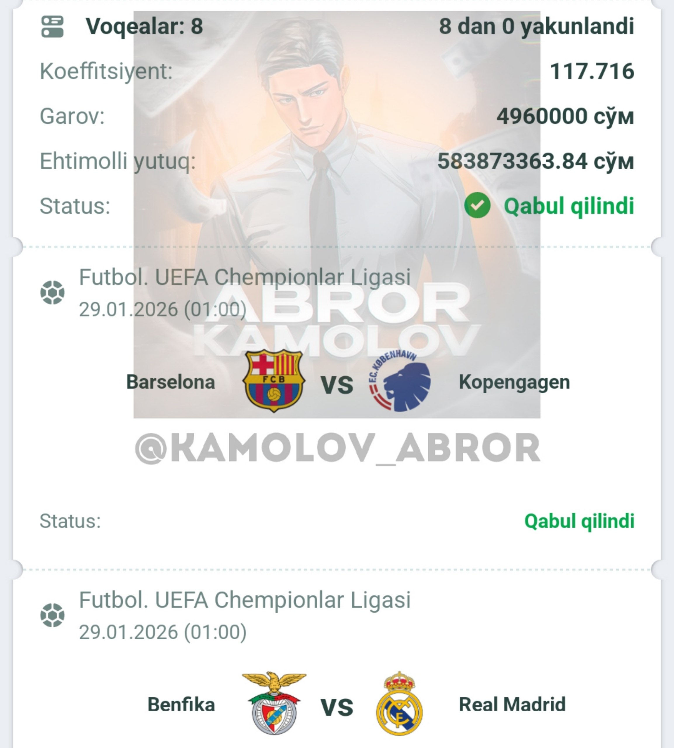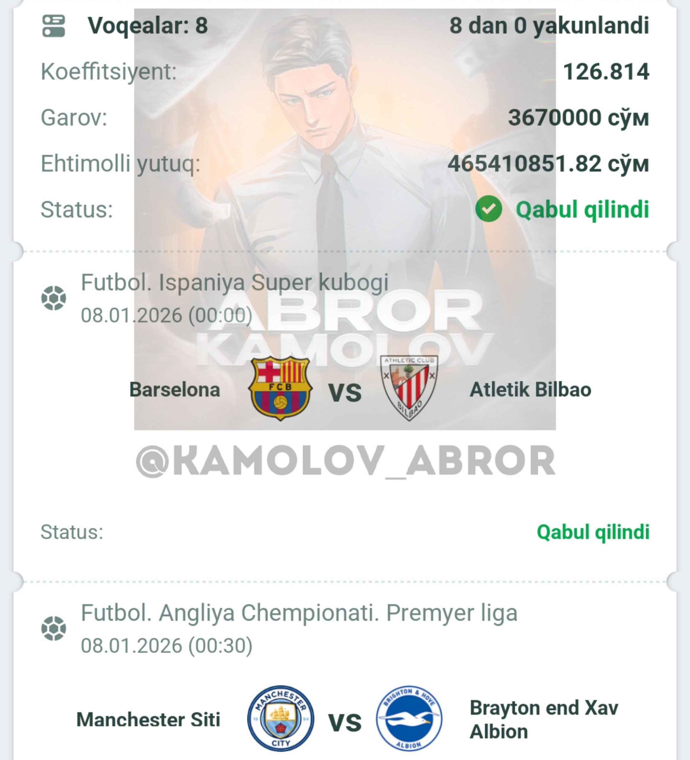 Forwarded from Abror Kamolov | Bet ๐ฐ