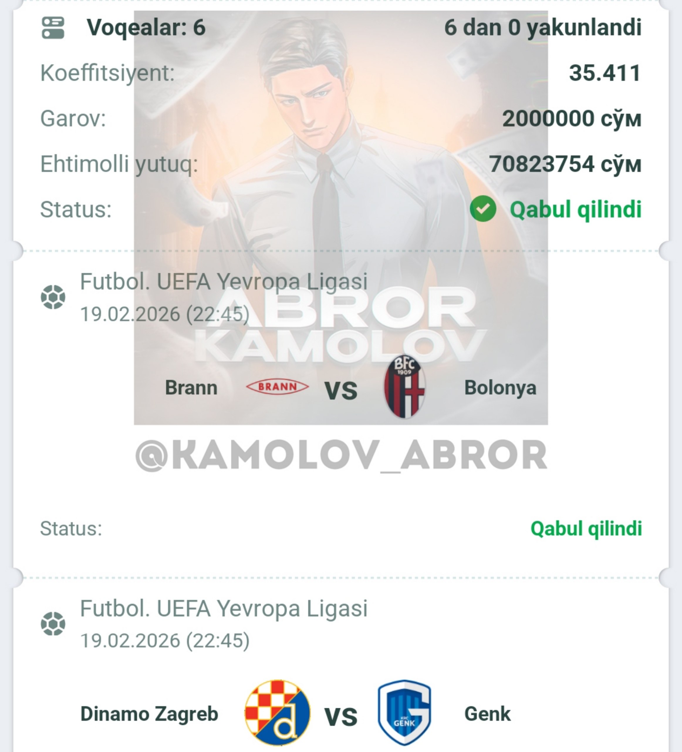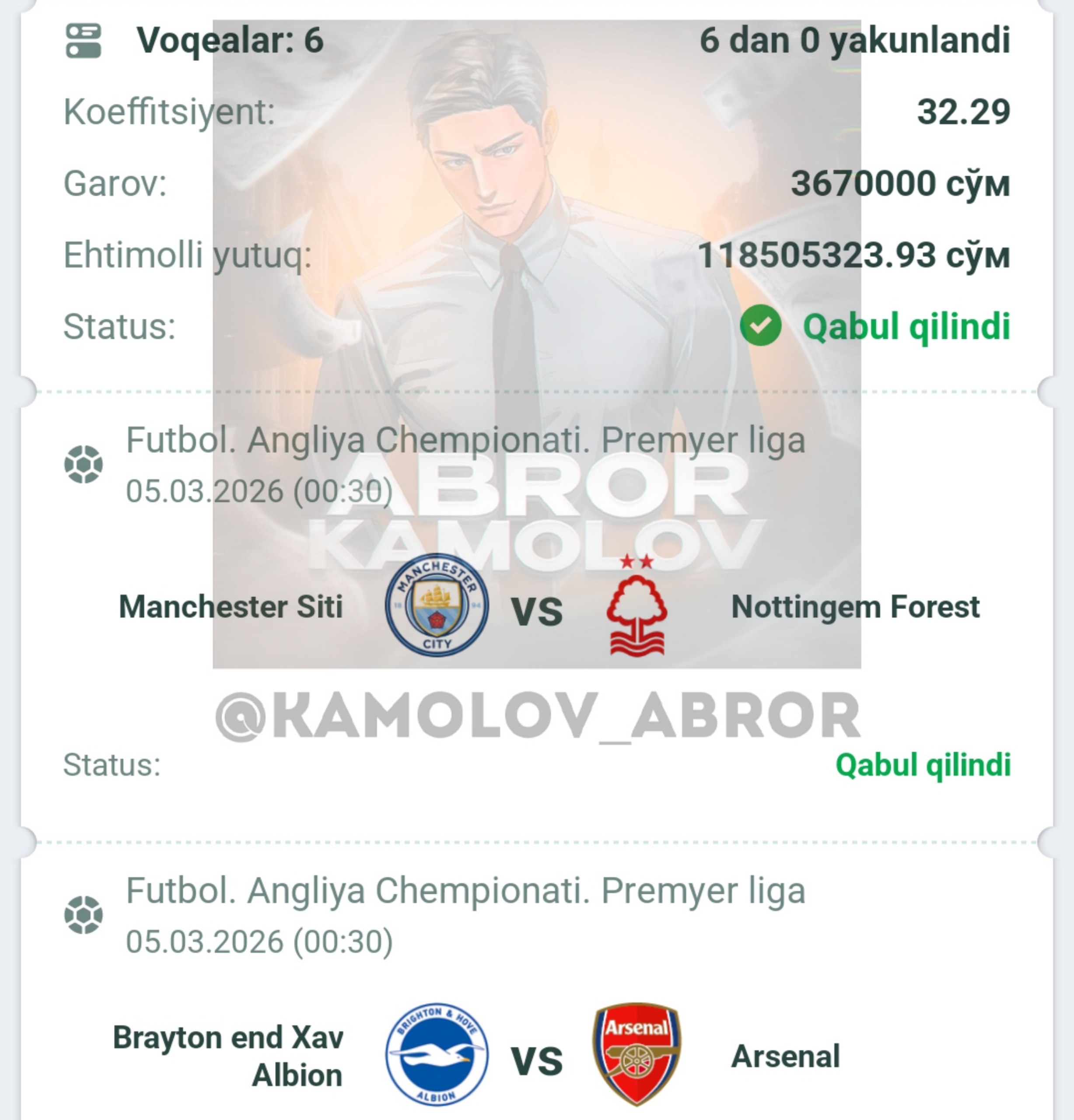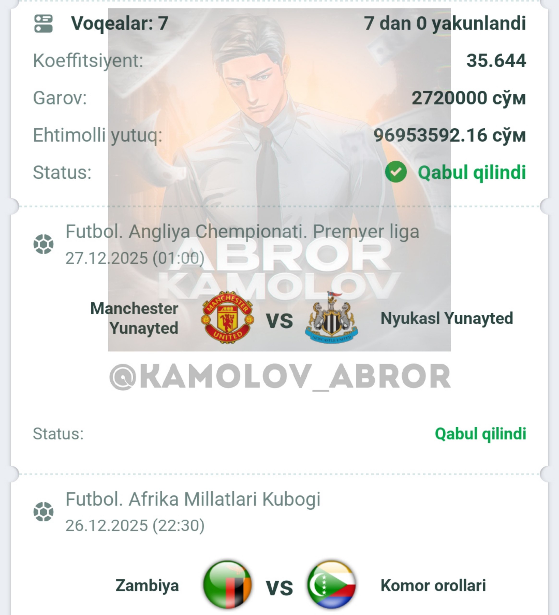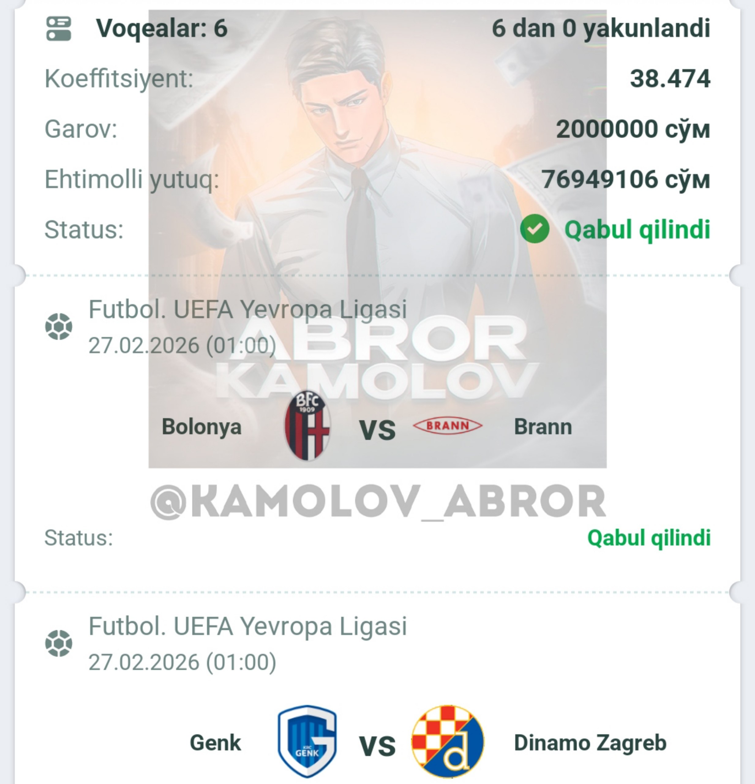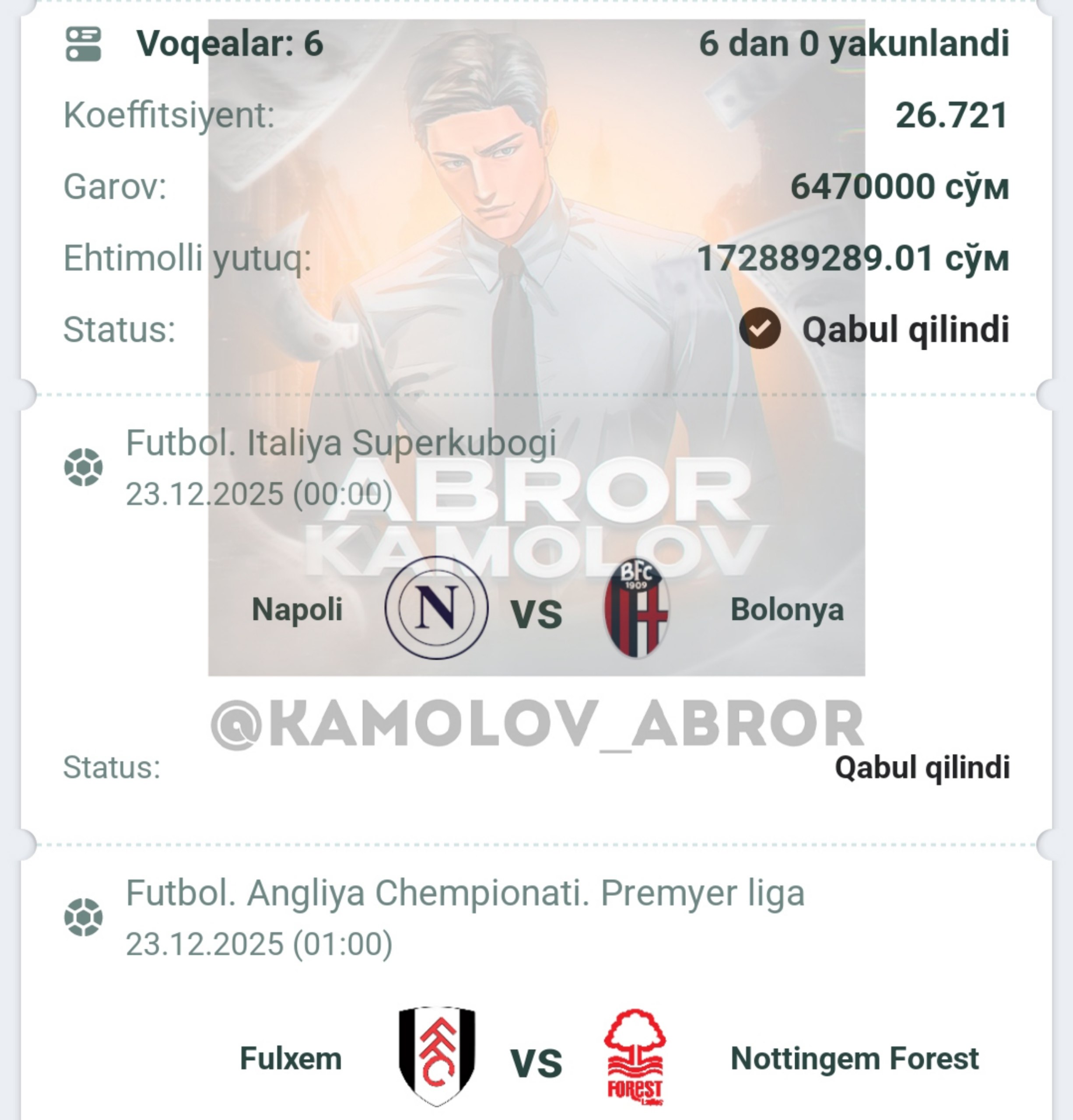 Forwarded from Abror Kamolov | Bet ๐ฐ