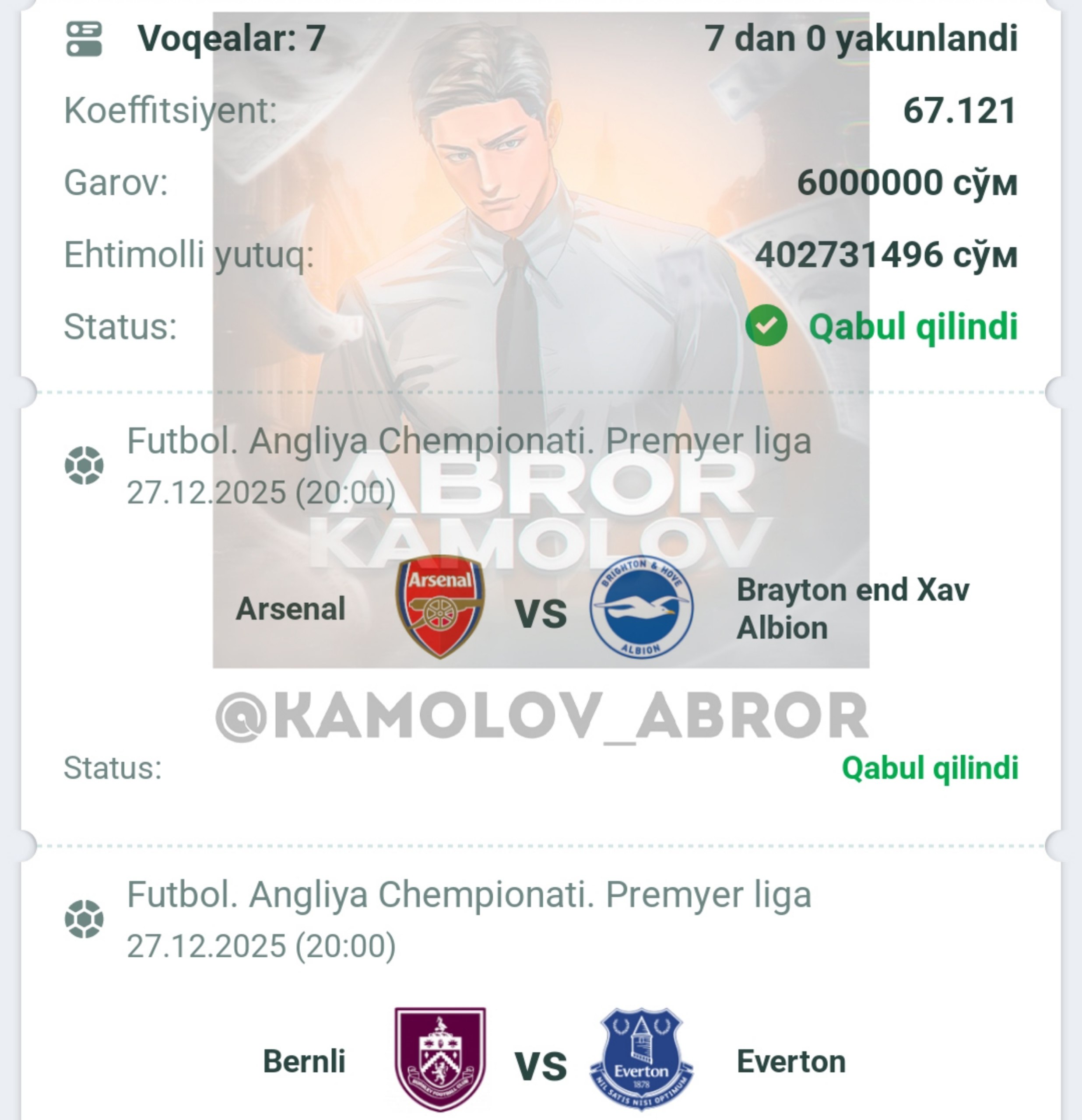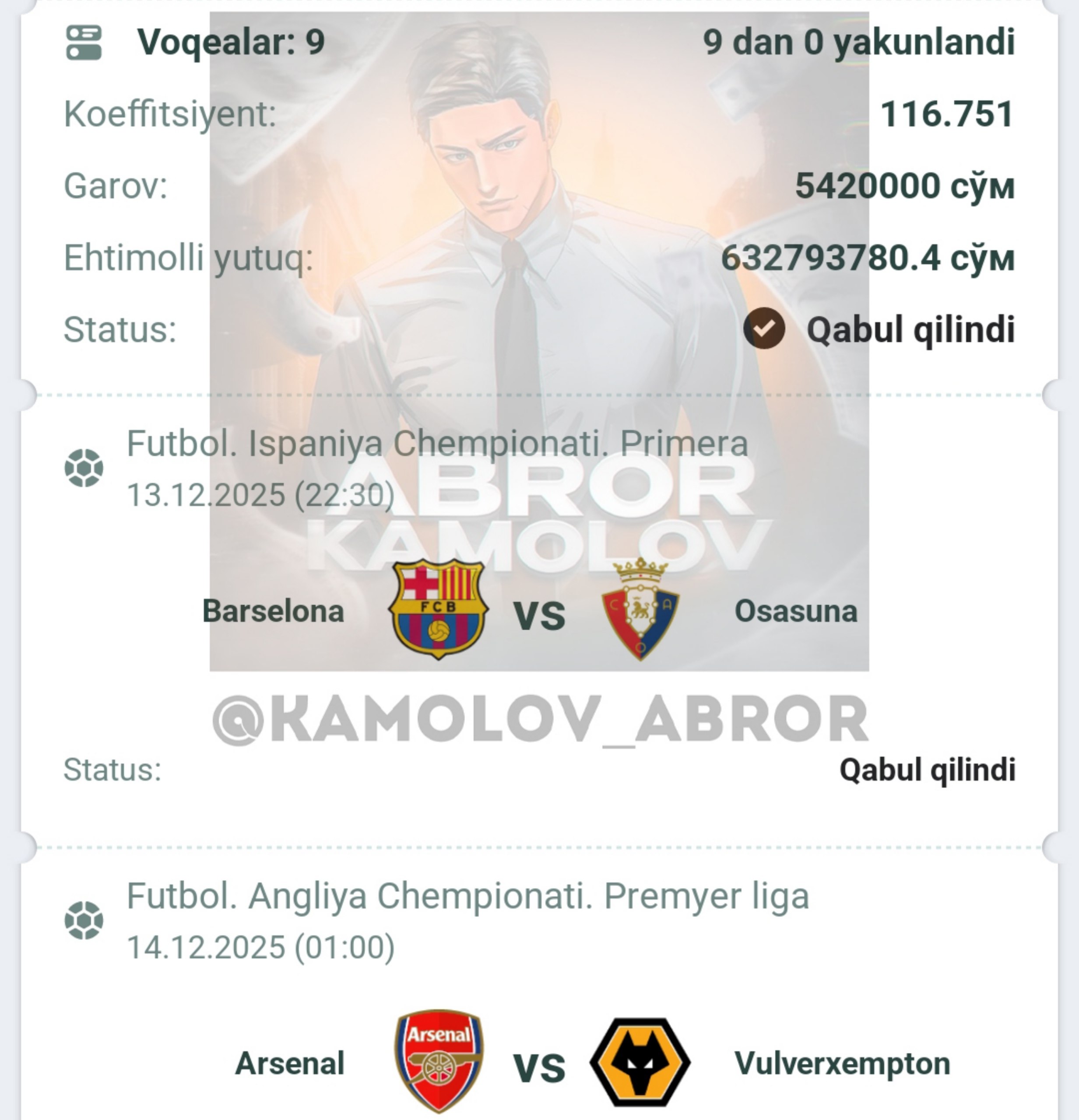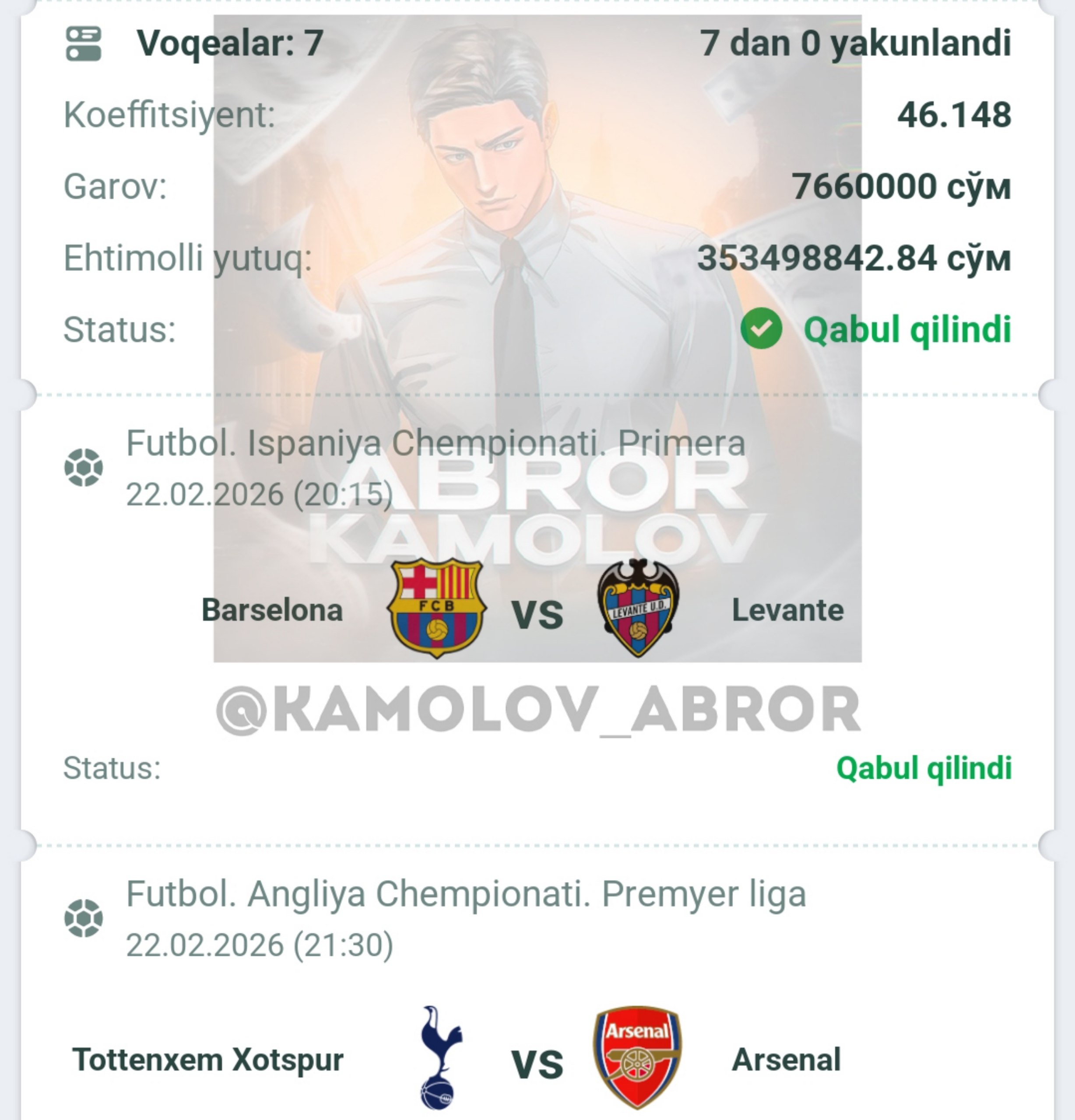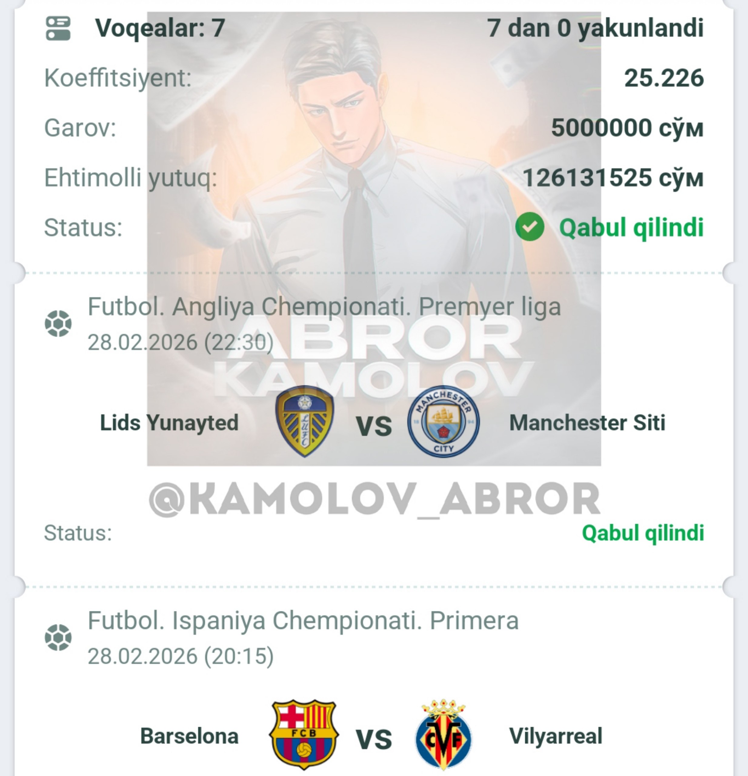 Forwarded from Abror Kamolov | Bet ๐ฐ