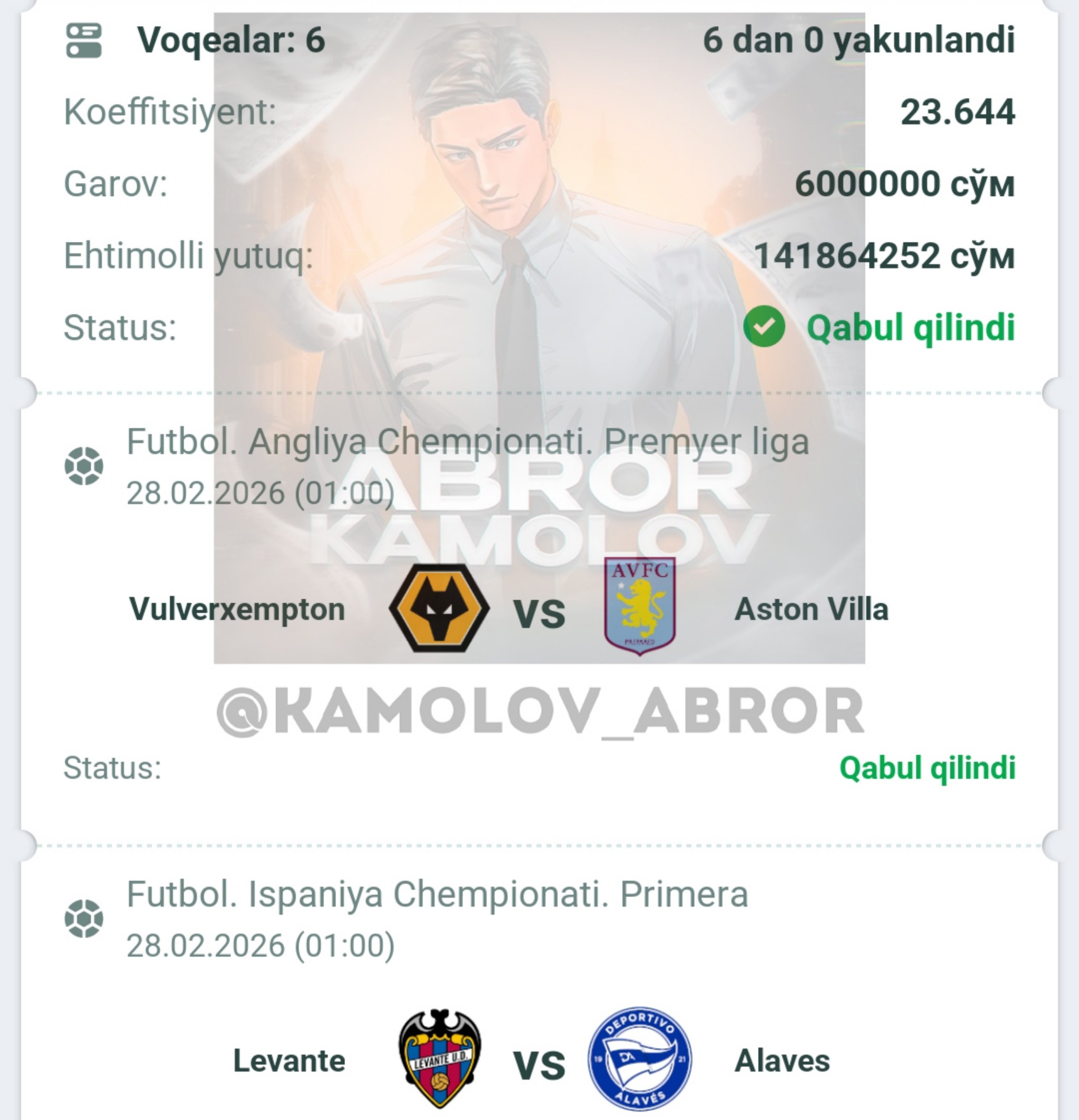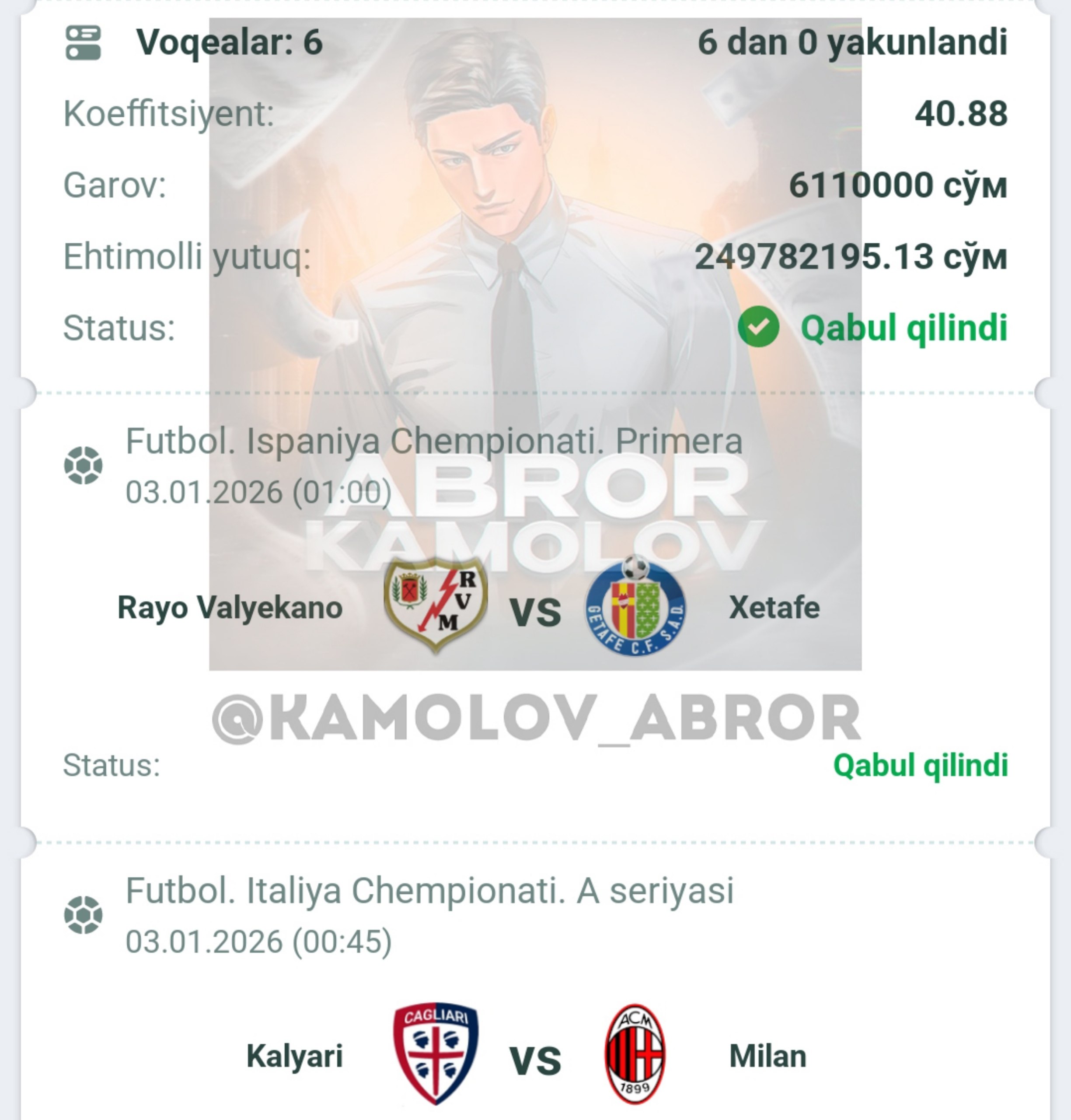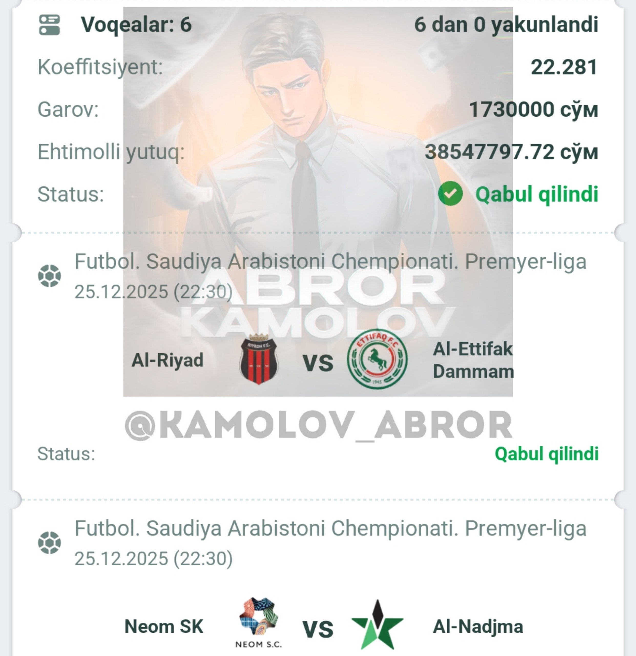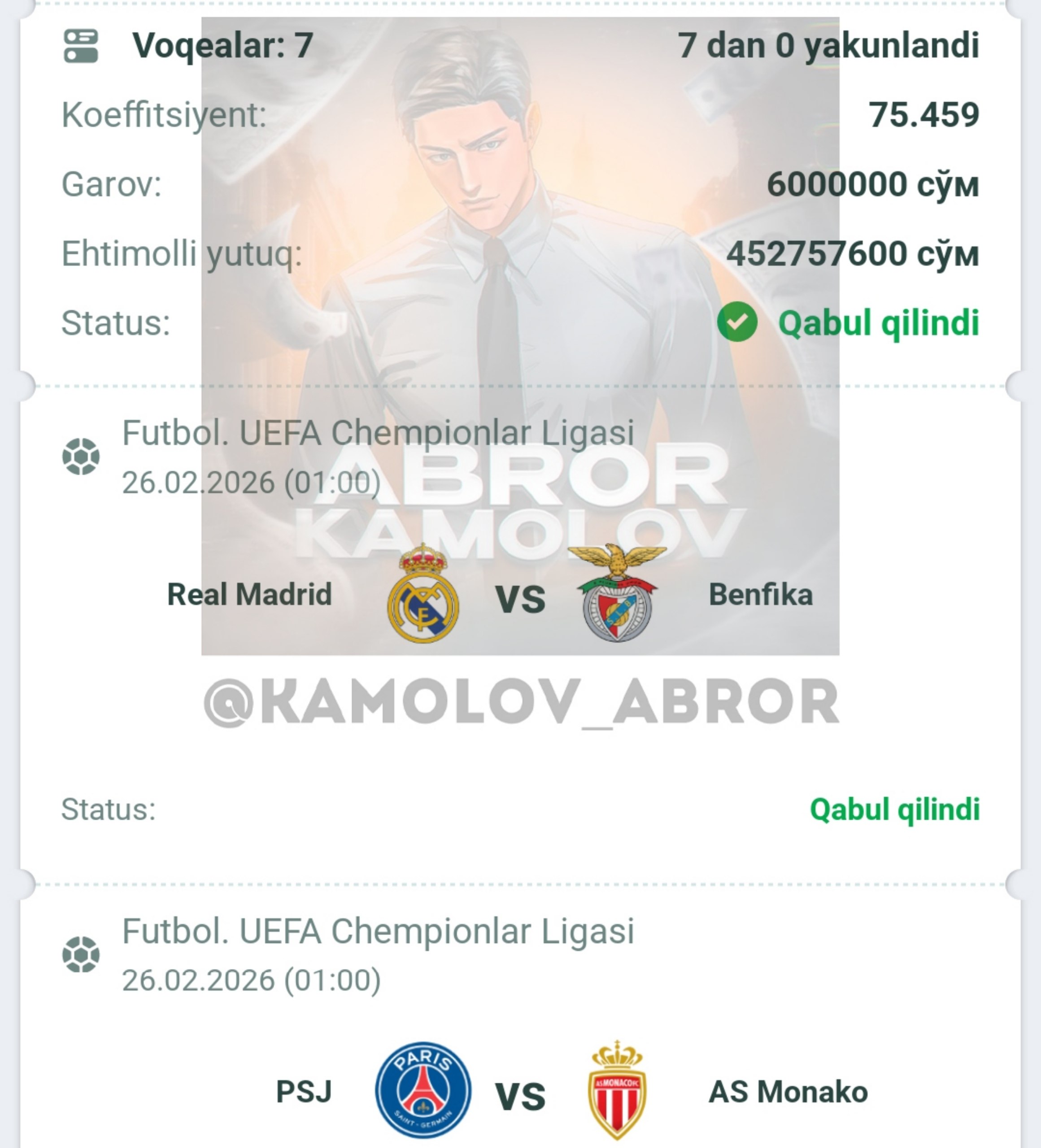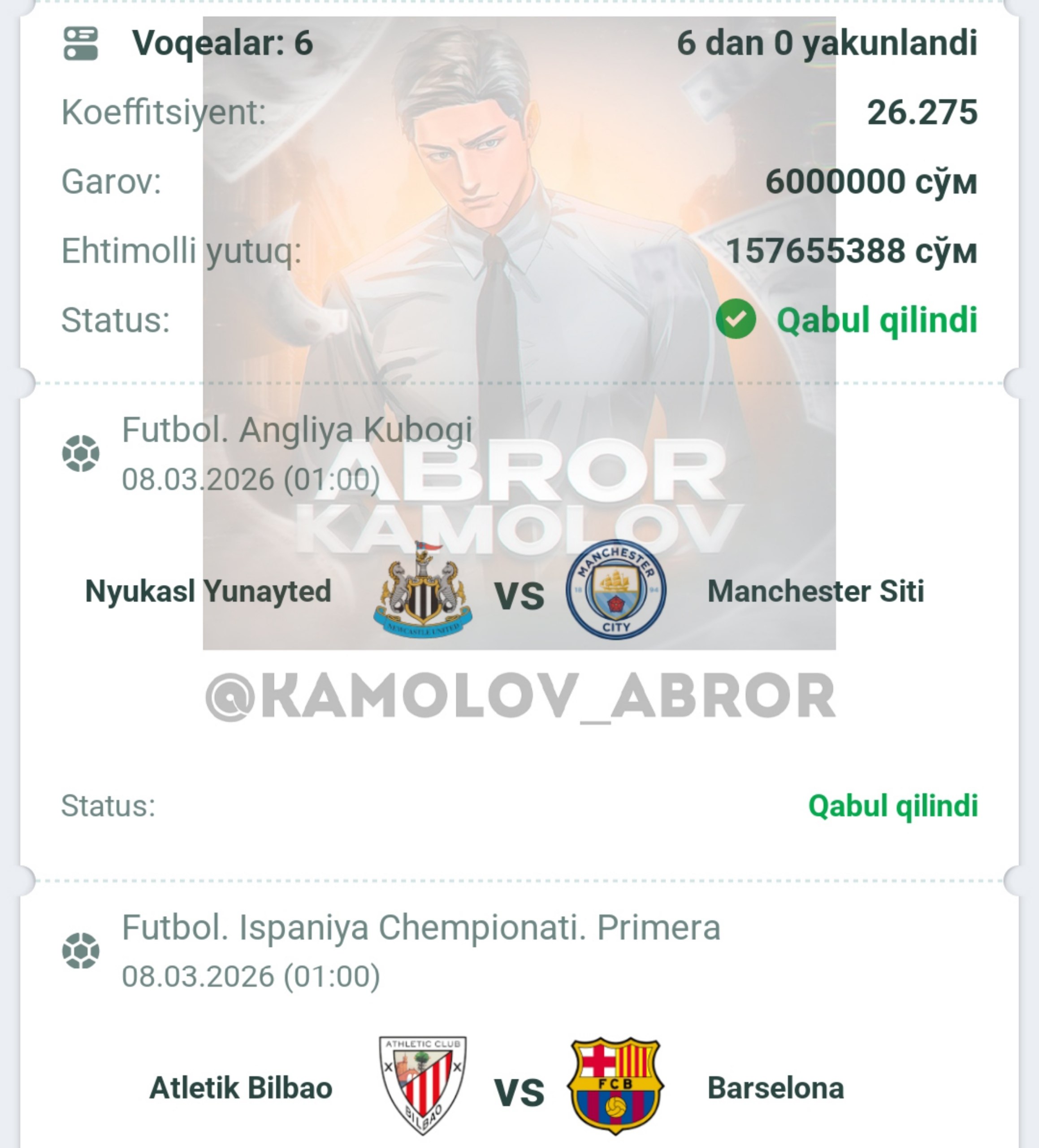 Forwarded from Abror Kamolov | Bet ๐ฐ