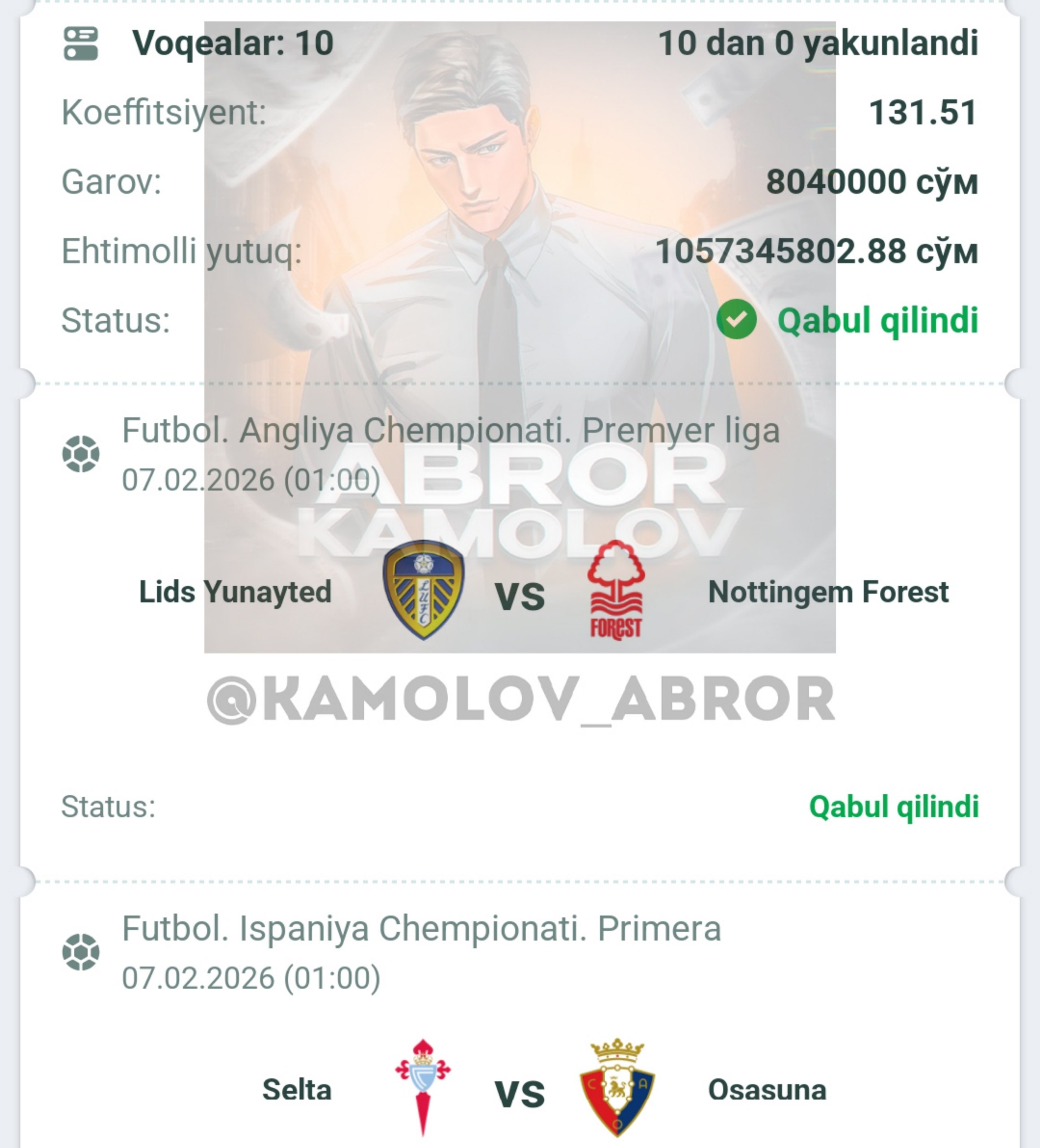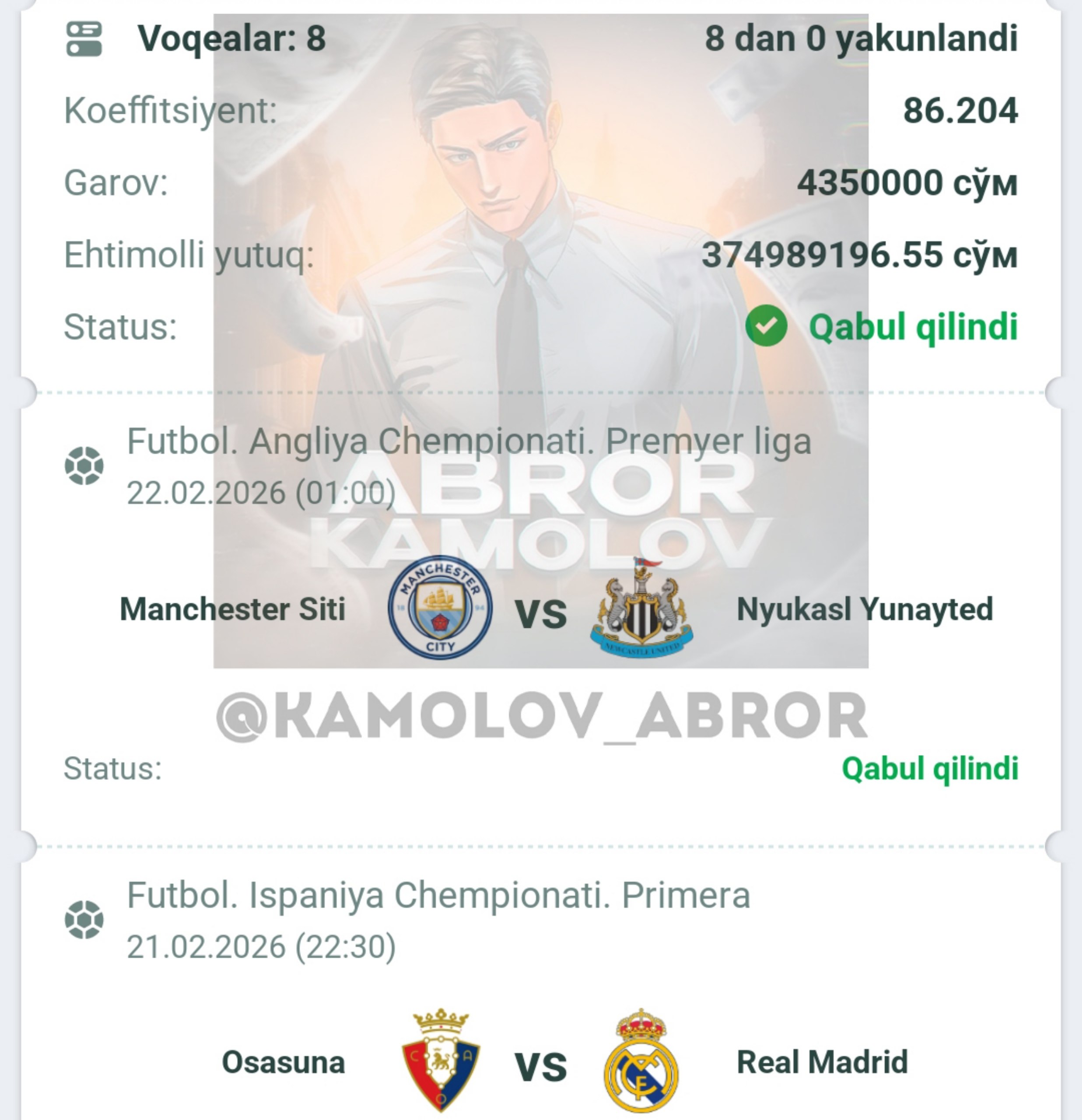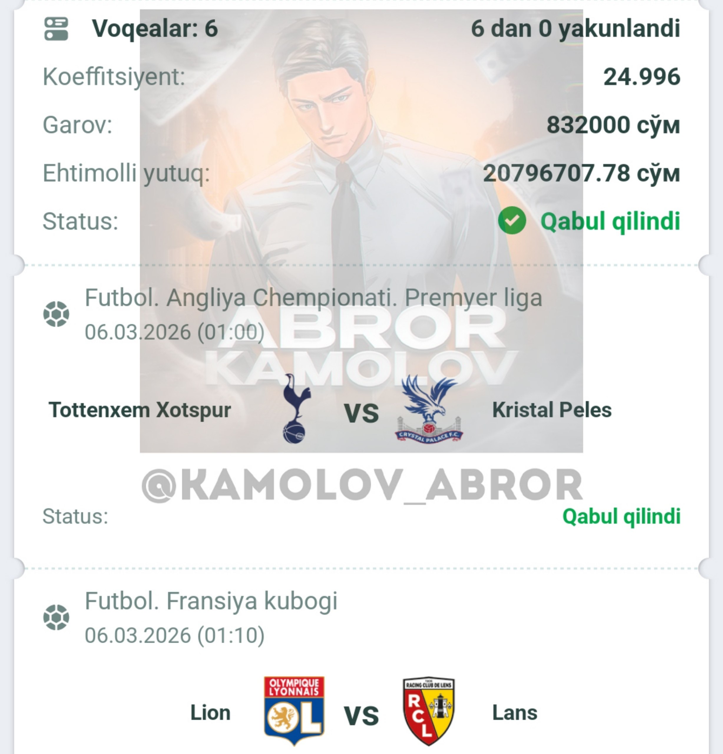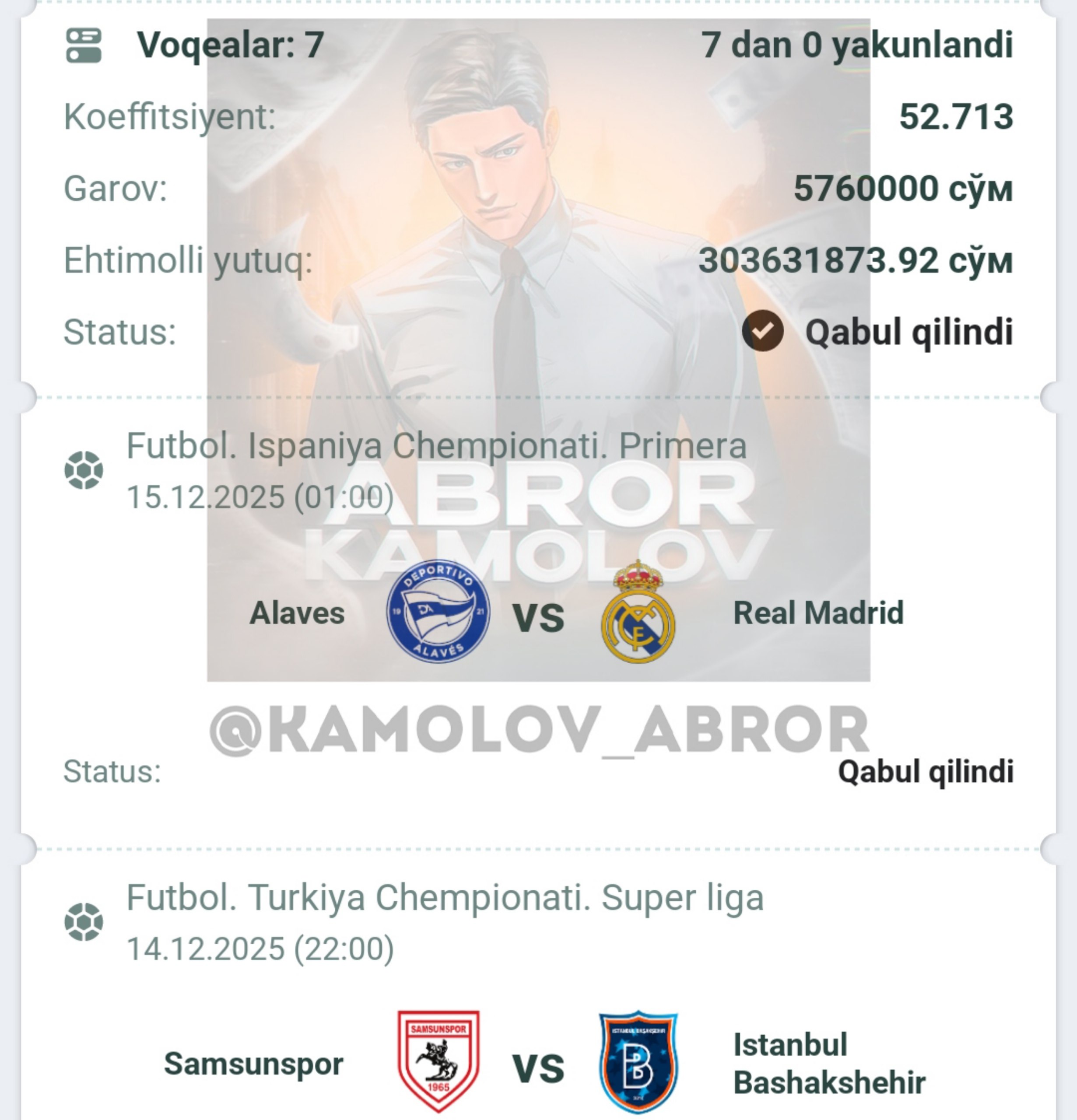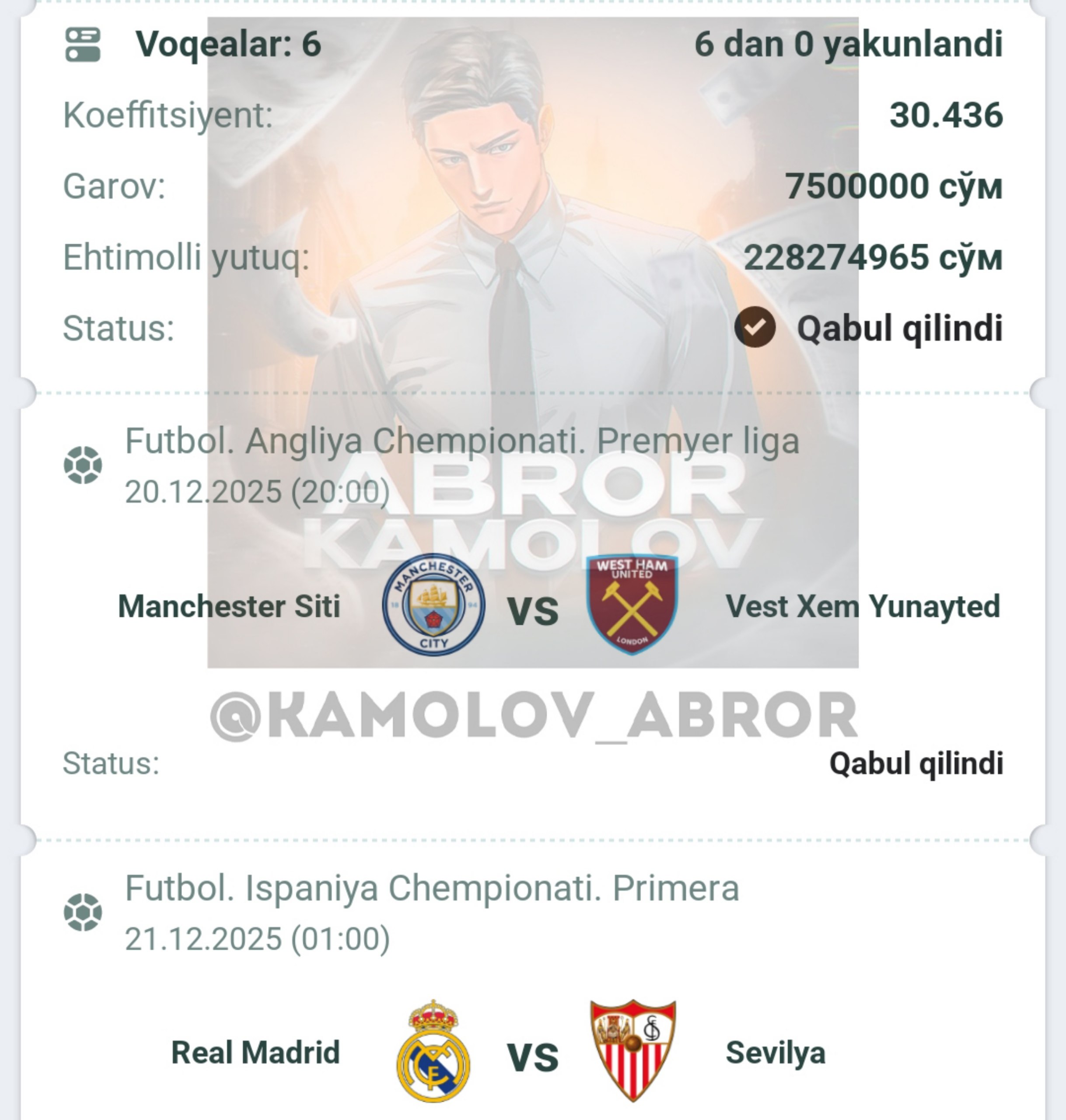 Forwarded from Abror Kamolov | Bet ๐ฐ