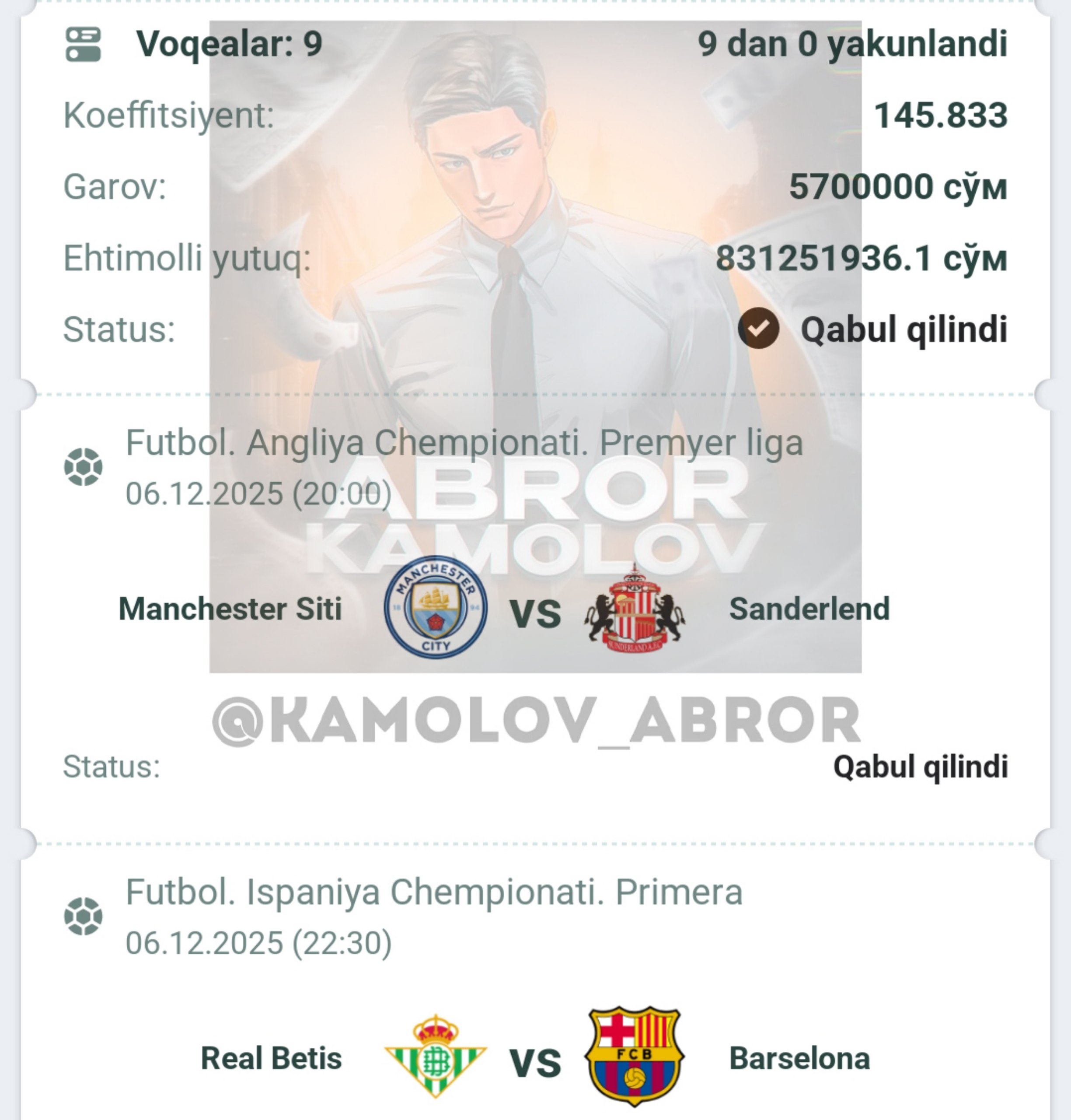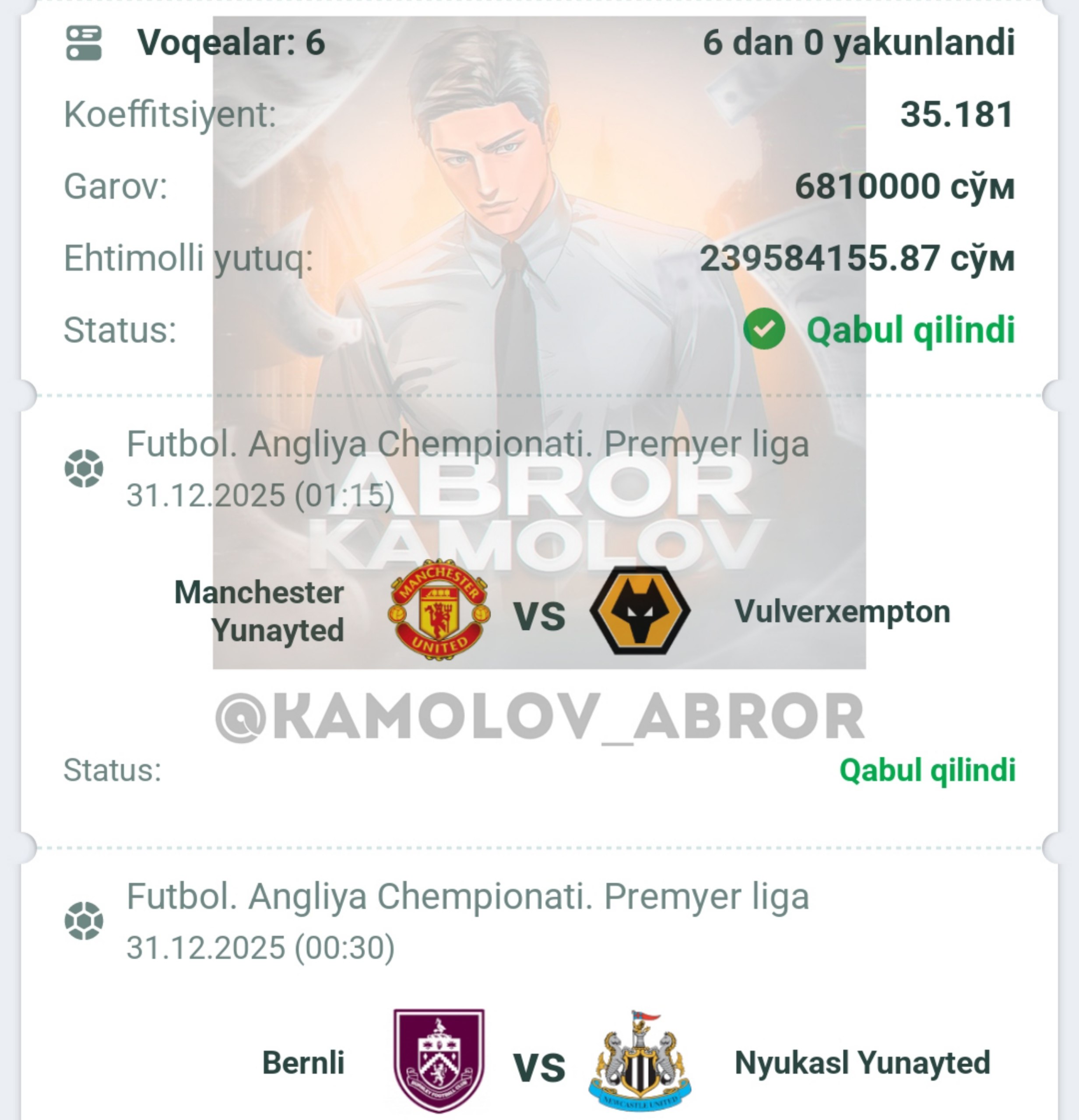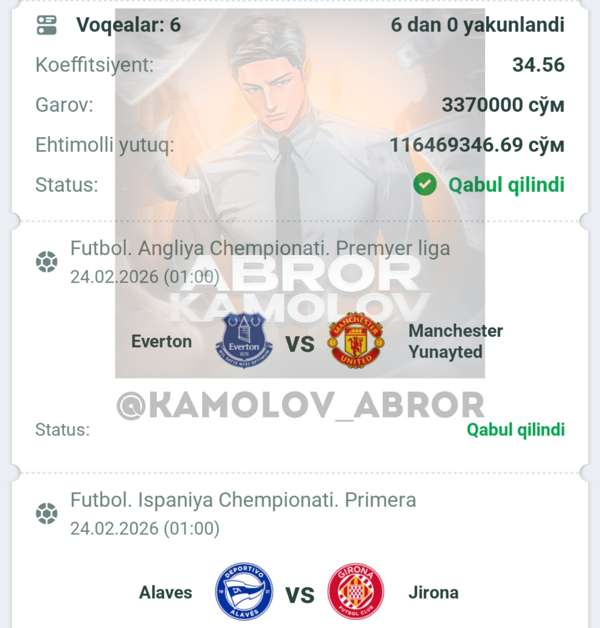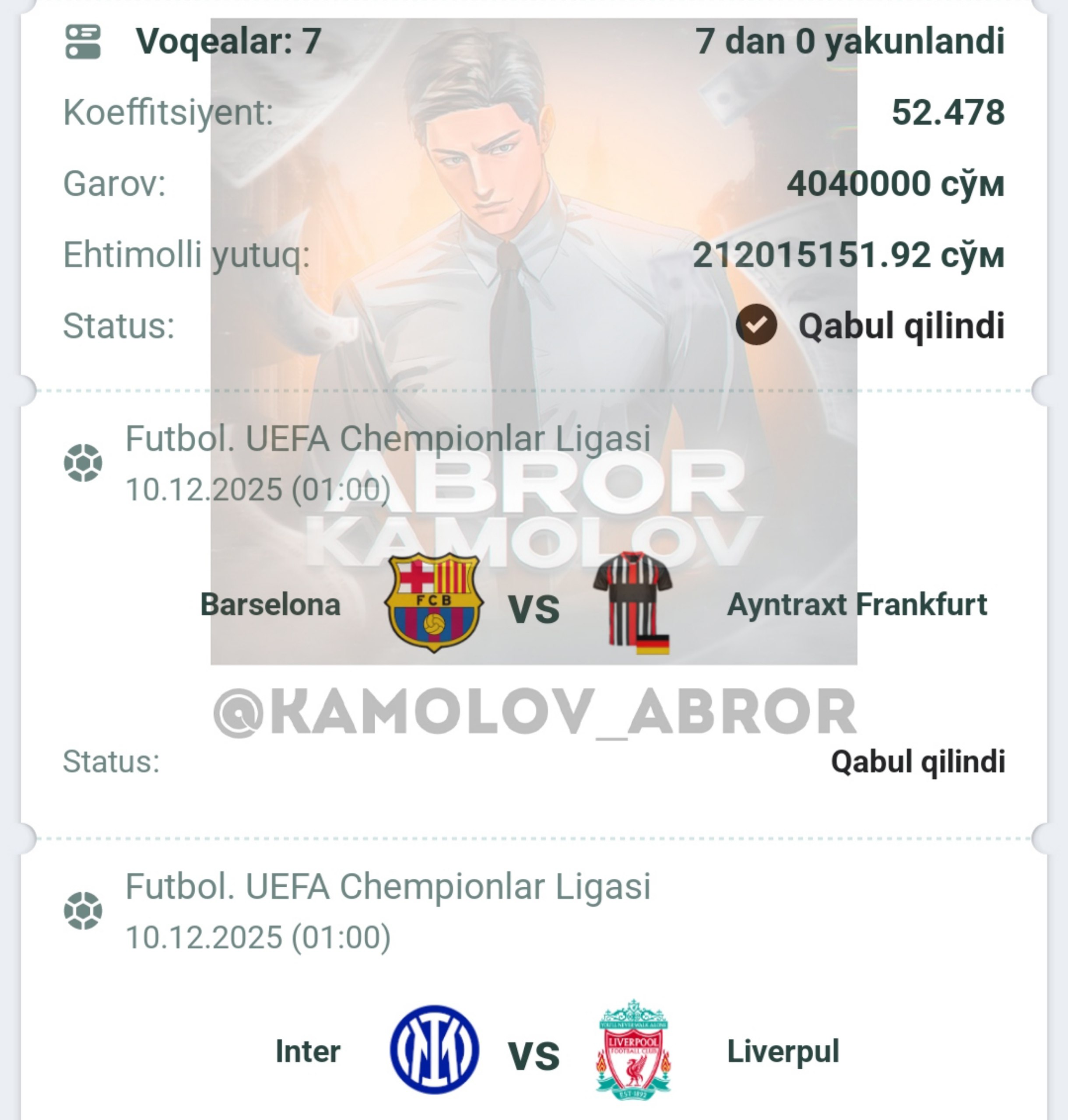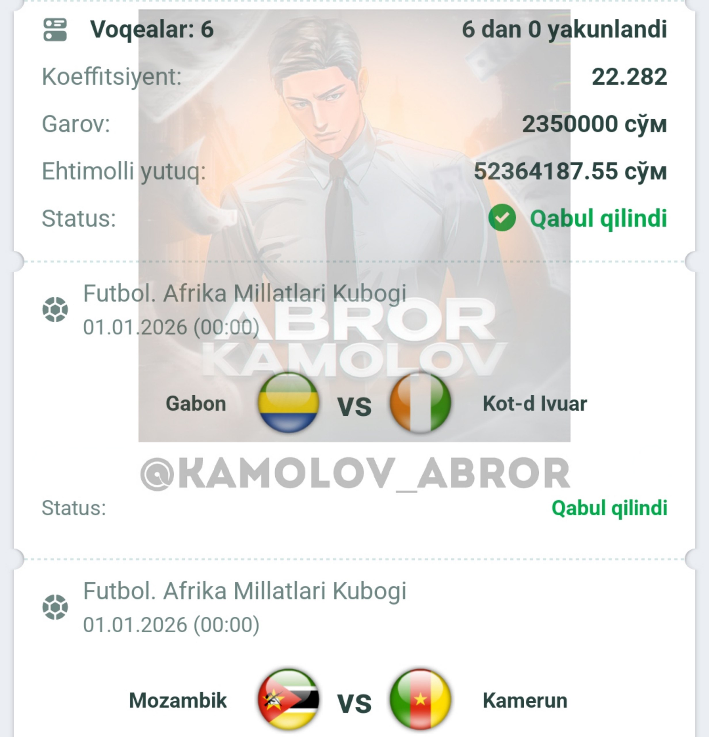 Forwarded from Abror Kamolov | Bet ๐ฐ