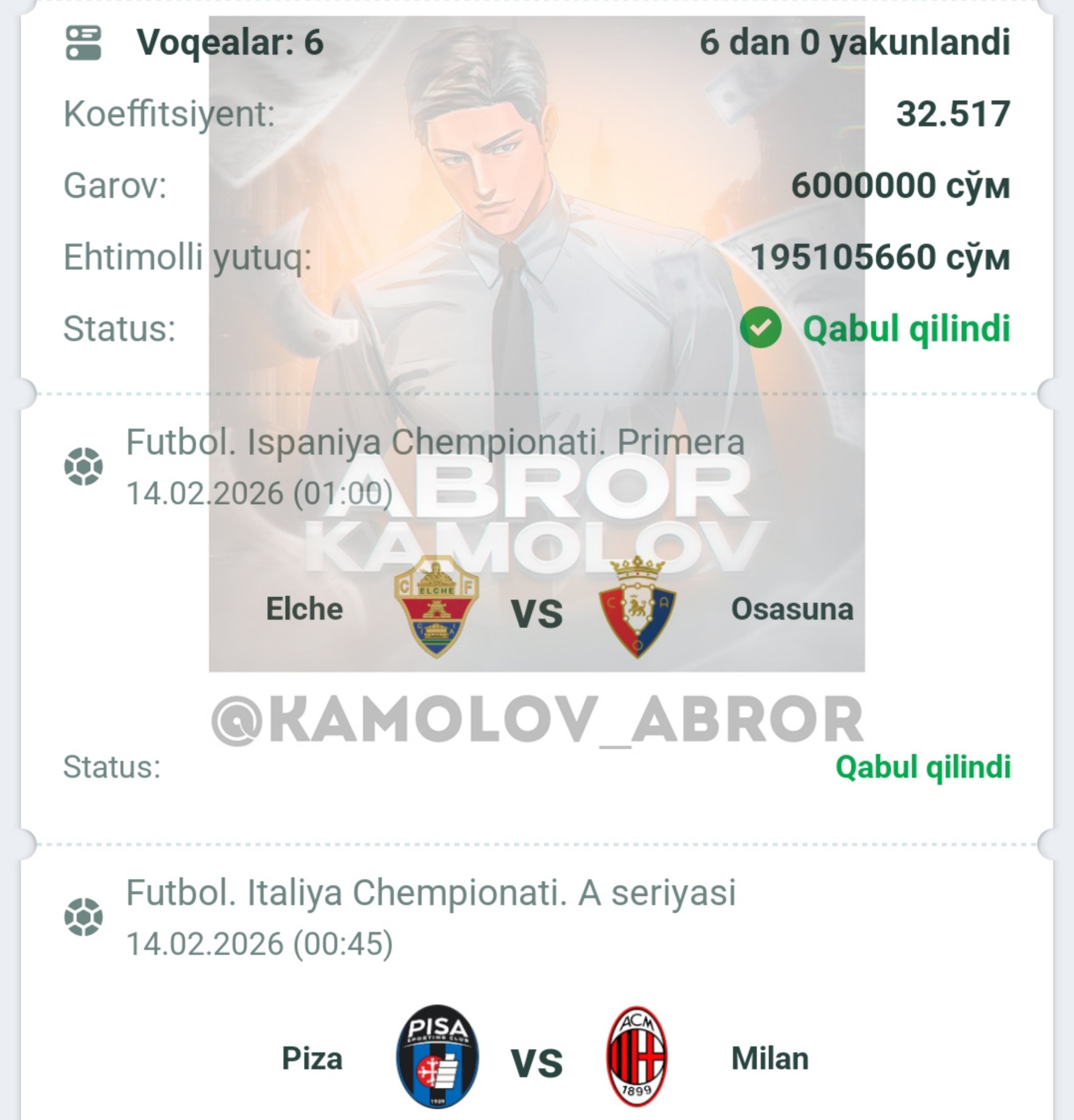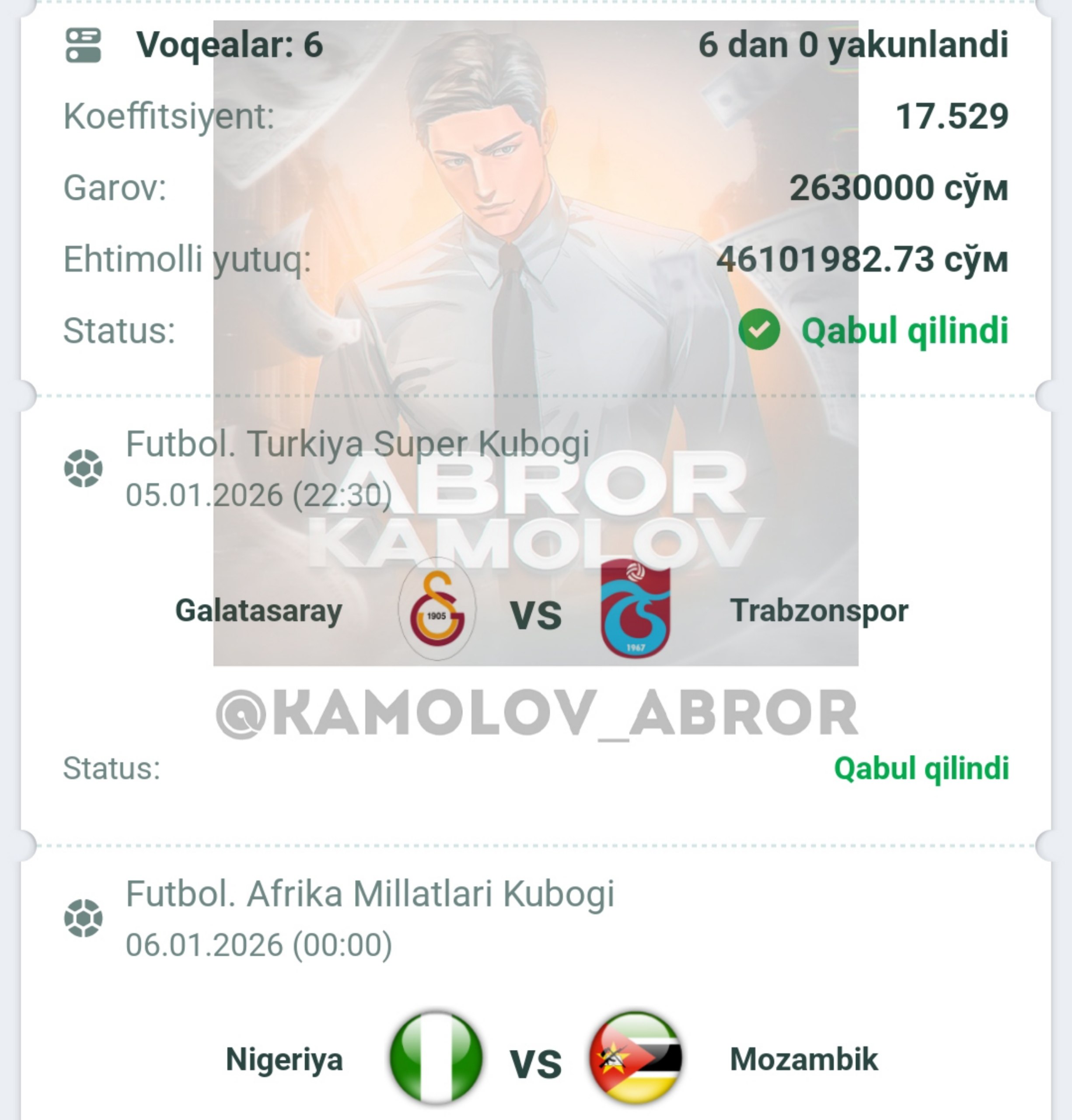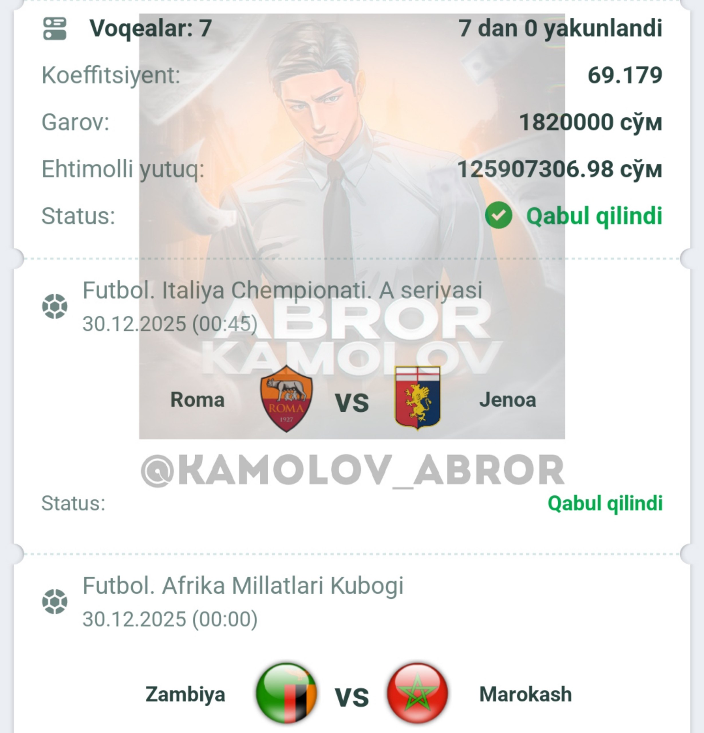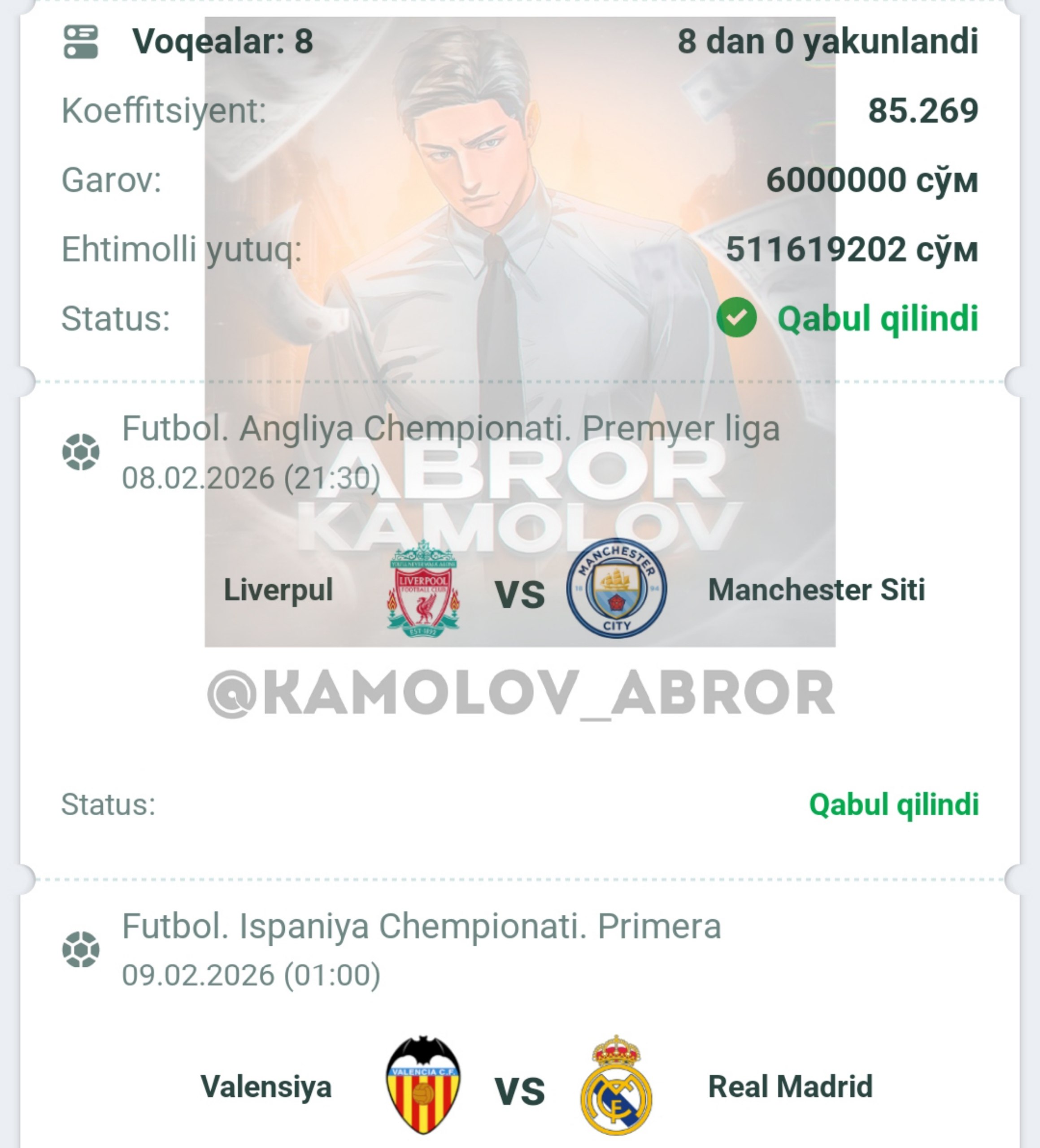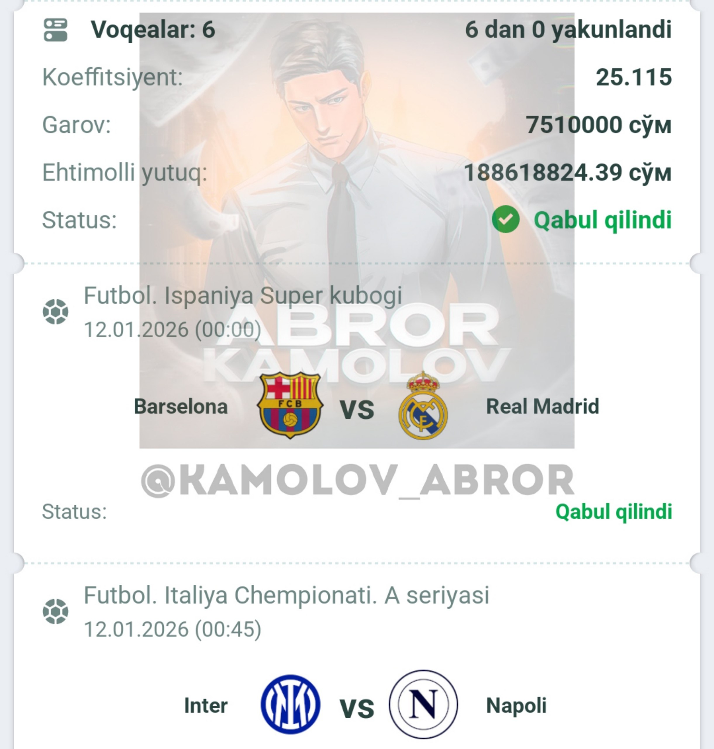 Forwarded from Abror Kamolov | Bet ๐ฐ