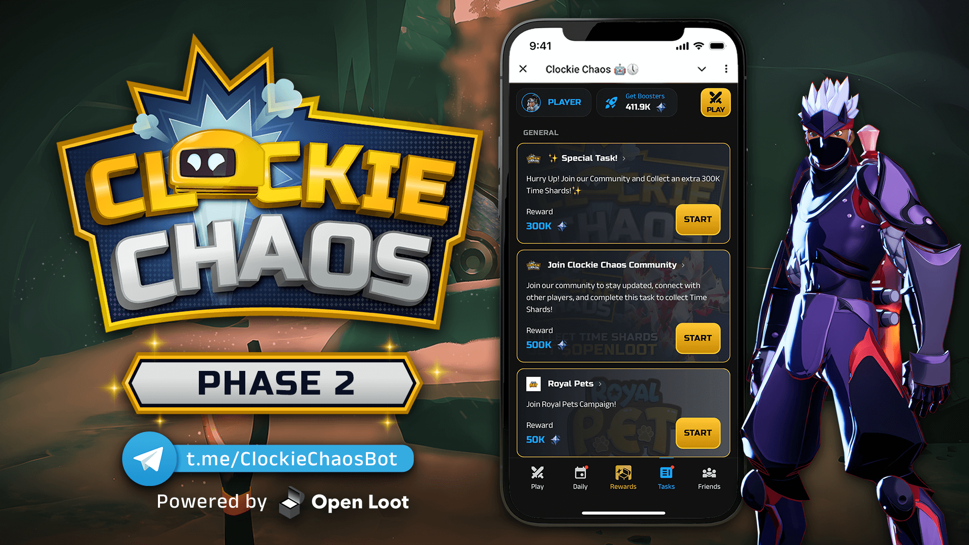 Jump into the bot, complete tasks, and start collecting more Time Shards now!