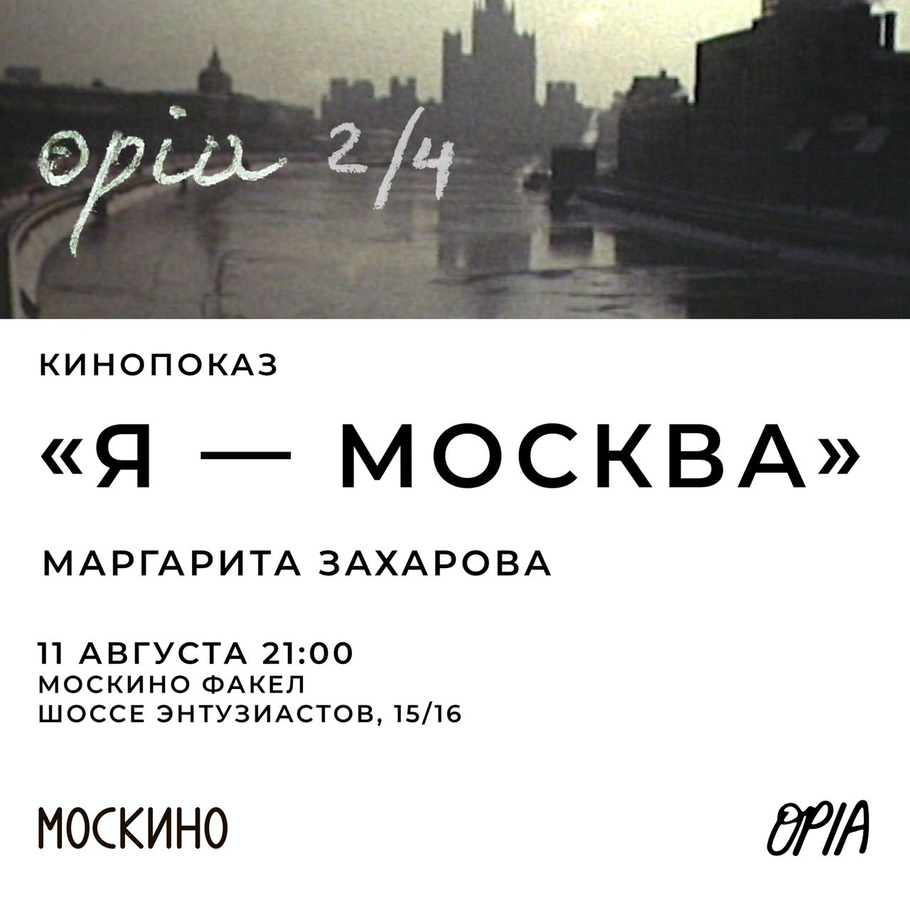 21:00 — Показ фильма «Я — Москва» (реж. Маргарита Захарова)