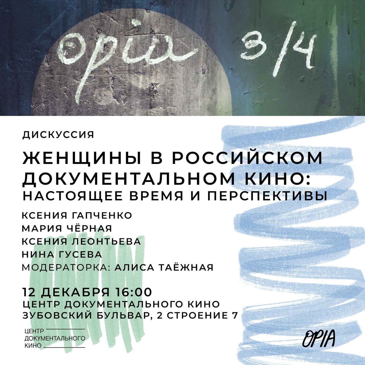 16:00 — Дискуссия «Женщины в российском документальном кино: настоящее время и перспективы»