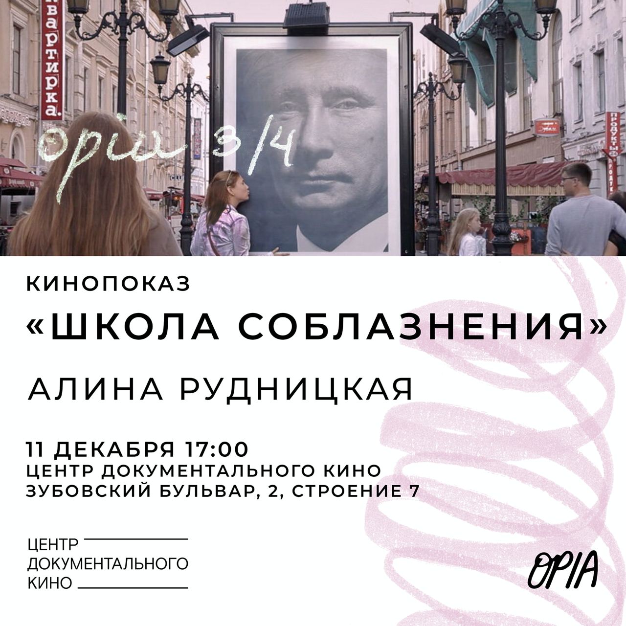 17:00 — показ фильма «Школа соблазнения», реж. Алина Рудницкая