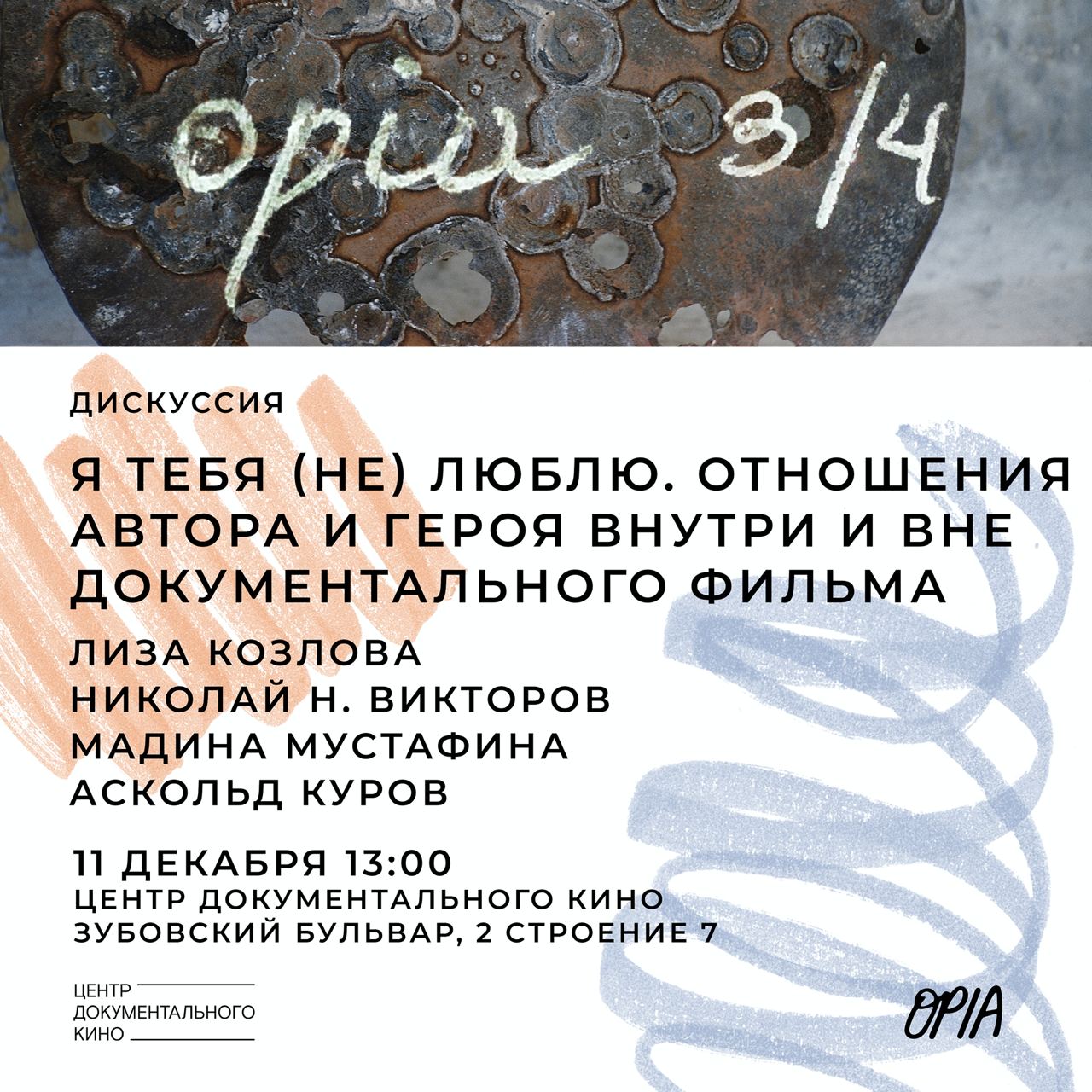 13:00 — Дискуссия «Я тебя (не) люблю. Взаимоотношения автора и героя внутри и вне документального фильма»