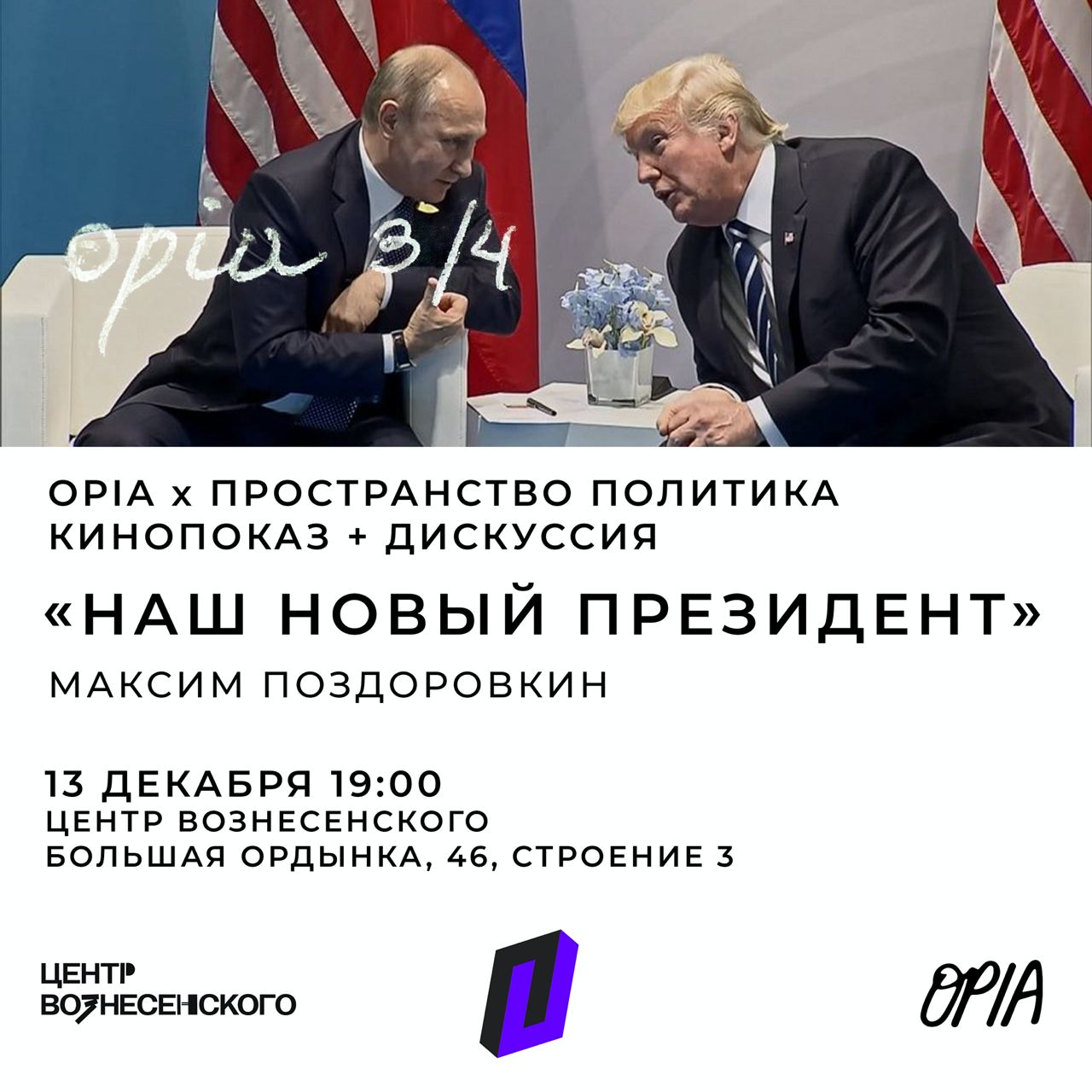 19:00 — показ фильма «Наш новый президент», реж. Максим Поздоровкин + дискуссия с экспертами // OPIA x Пространство Кино
