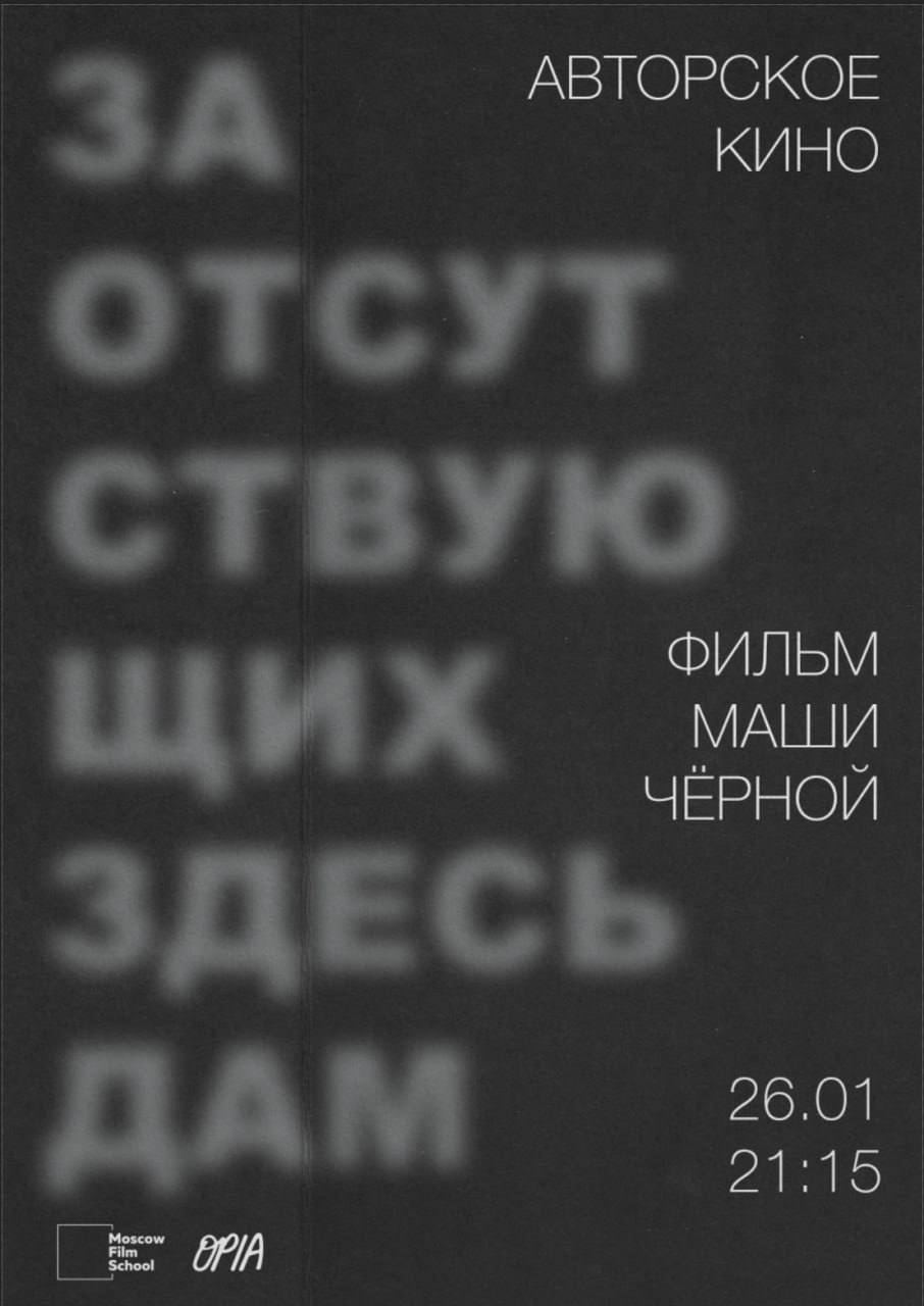 Начнём 26 января в 21:15 с нового фильма режиссёра Маши Чёрной «За отсутствующих здесь дам».