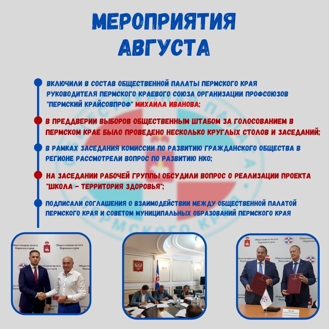 ✅Включили в состав Общественной палаты Пермского края руководителя Пермского краевого союза организации профсоюзов «Пермский крайсовпроф» Михаила Иванова;