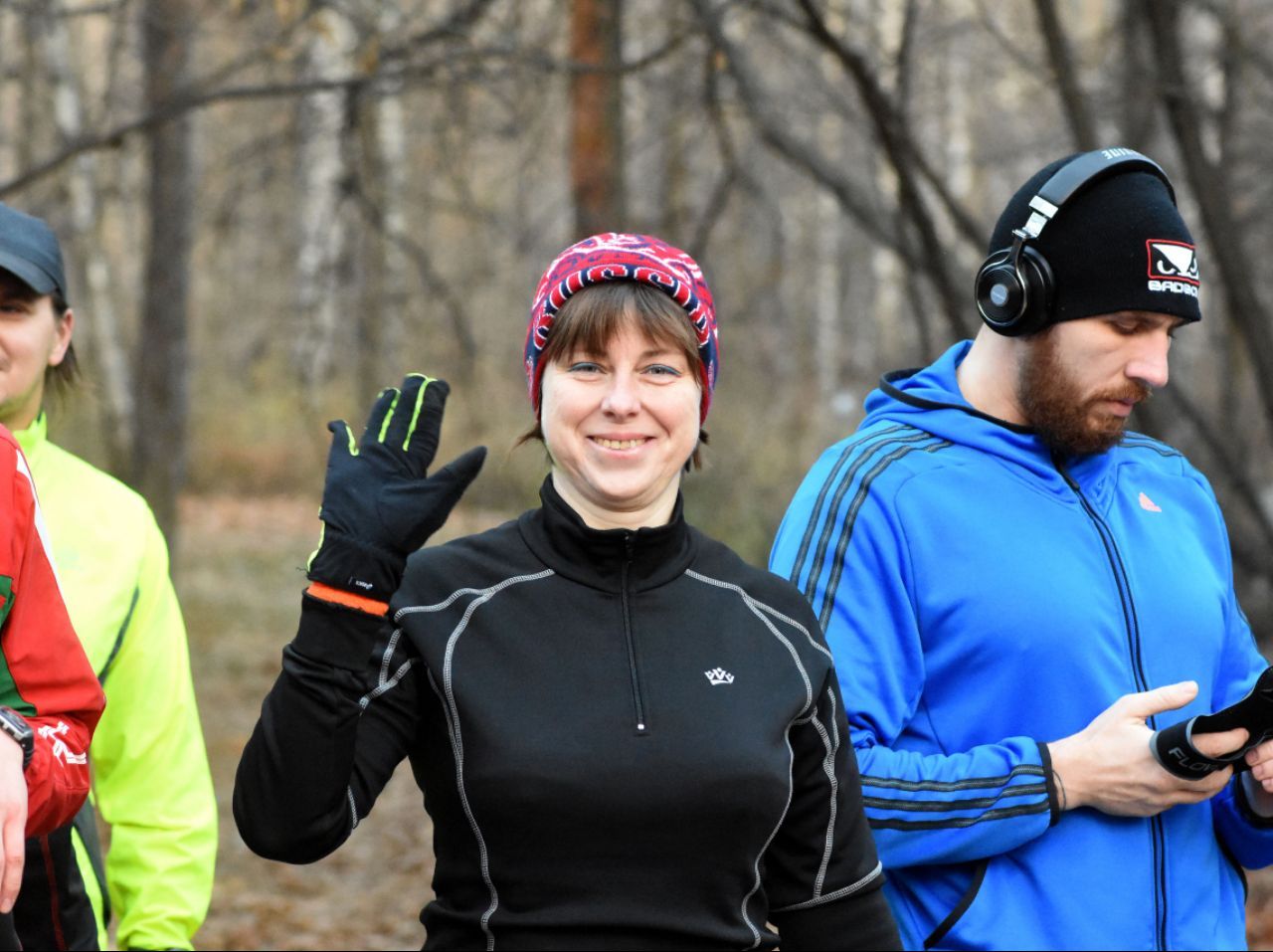 На фото, кстати, наши гости из parkrun Наташинский в своих фирменных футболках с информацией о паркране, для привлечения внимания не знающих о нем местных бегунов.