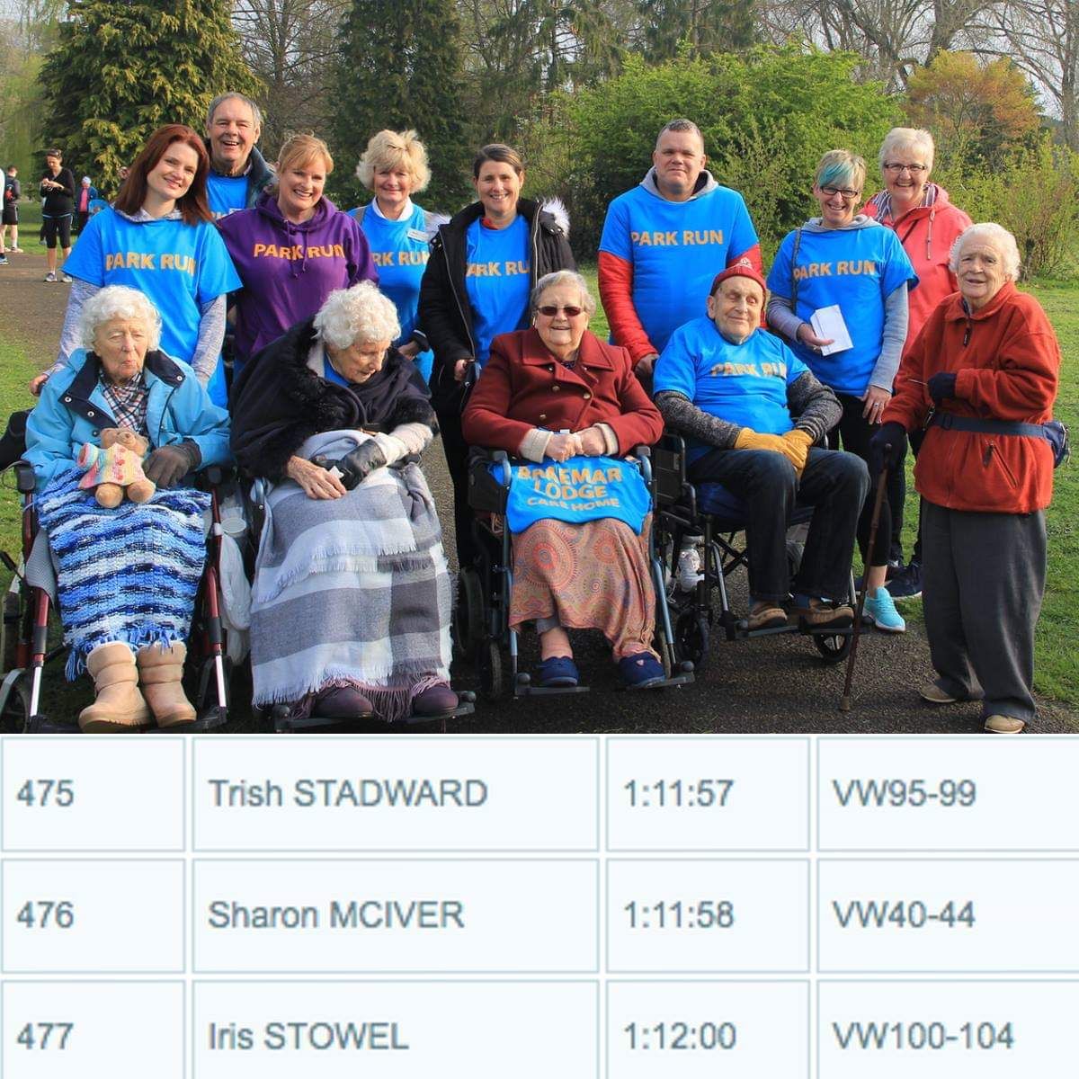 Четверо из них преодолели дистанцию в инвалидных креслах, среди которых была 102 летняя Iris.