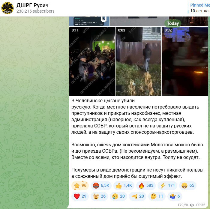 Для тех кто не в курсе: в Челябинске убили таксистку, подозреваемые двое цыган. В рамках повышения прогрессивности российского капитализма, укрепления патриотизма и всеобщего единения, возмущённые бездействием властей граждане, начали немножечко бунтовать и громить цыган, а цыгане немножечко отстреливаться. После чего на место подоспел СОБР и начал, почему-то, крутить погромщиков, что дико возмутило наших дорогих правачков из всяких Русских общин.