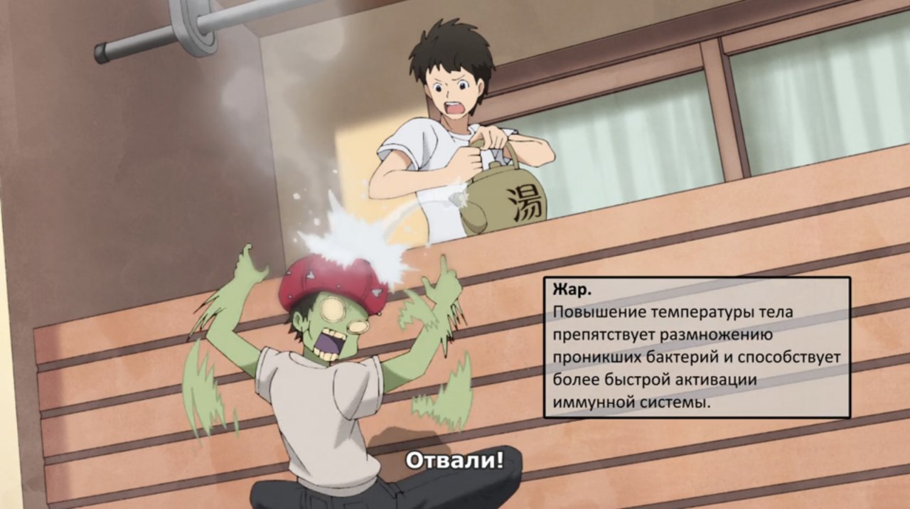 Собственно, секретный компонент «Клеток…» — познавательность. Как «Доктор Стоун» способен влюбить в физику, так сериал David Production увлекает биологией сильнее, чем девять из десятистоматологов учителей. Ни один процесс, клетка и микроорганизм не останется без пояснения — голосом и/или титром. Соратников лейкоцита тоже немало — от глуповатых Т-киллеров, напоминающих спецназ, до клеток памяти, подсказывающих, что делать. Правда, сноски с функциями главных героев, всплывающие каждый эпизод, в какой-то момент начинают утомлять.
