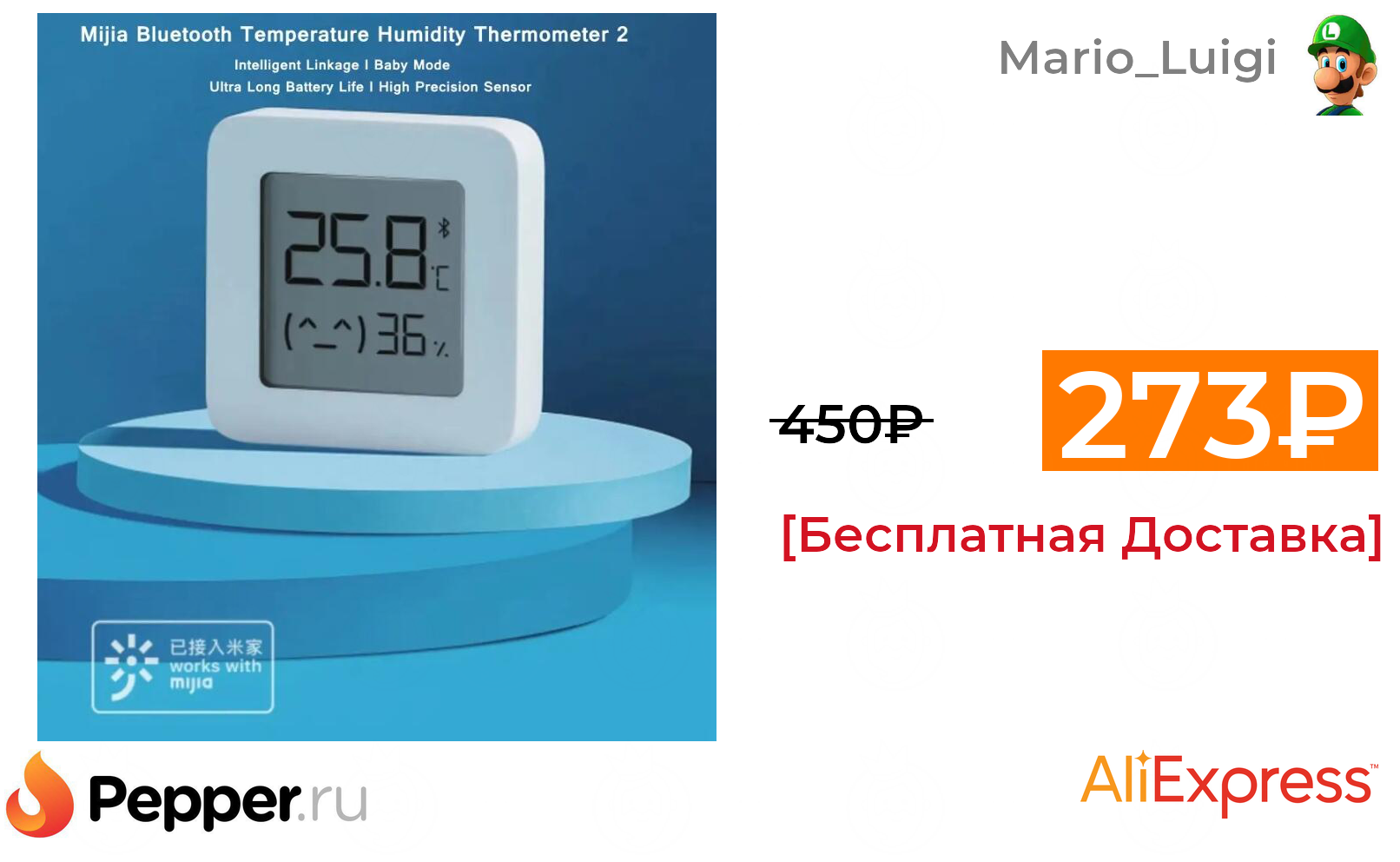 🔹Термометр-гигрометр Xiaomi Thermometer 2 с Bluetooth 273₽ ❗️🔥(везде от 450₽)